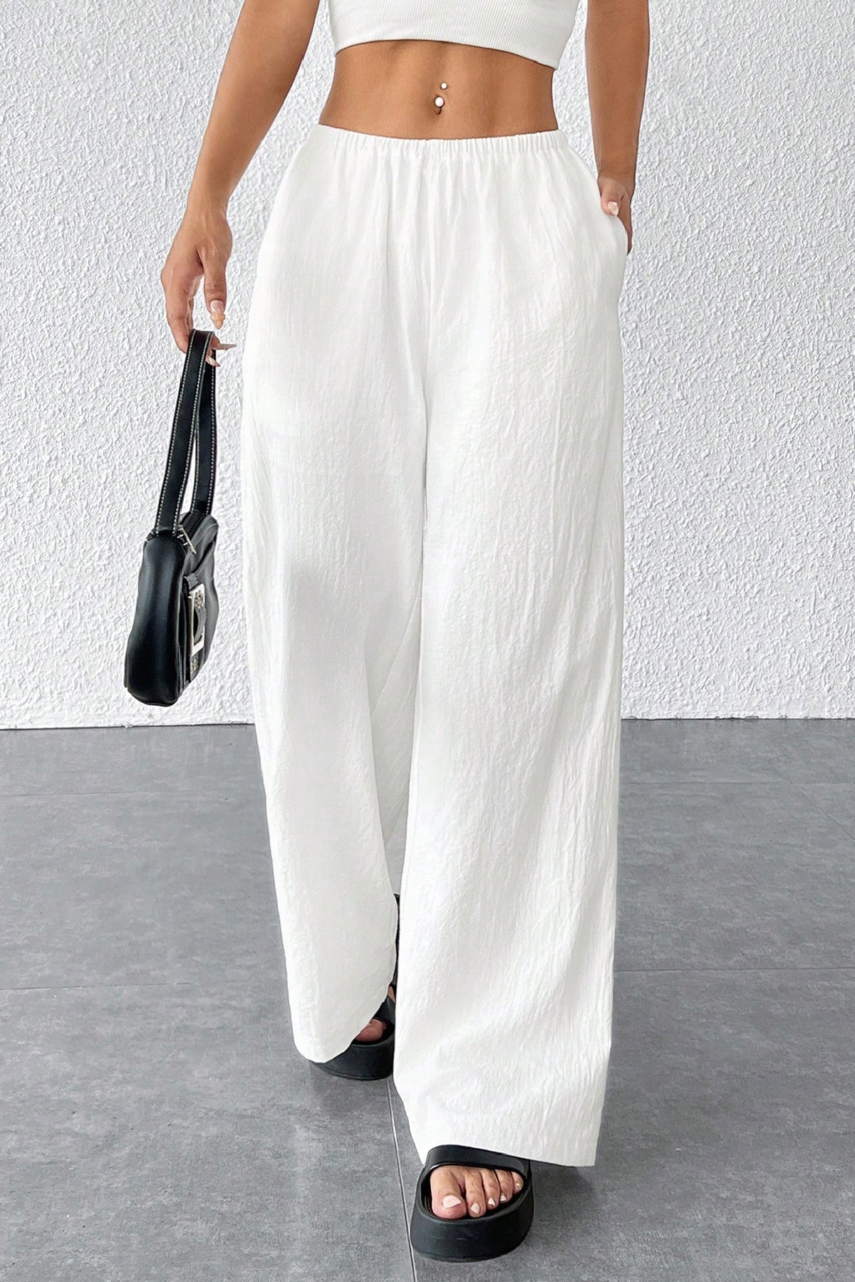 Rahat kesimi ile günlük kullanım için ideal, bol paça pantolon.