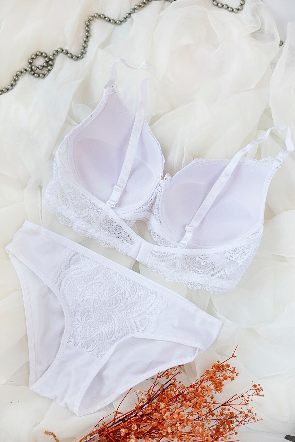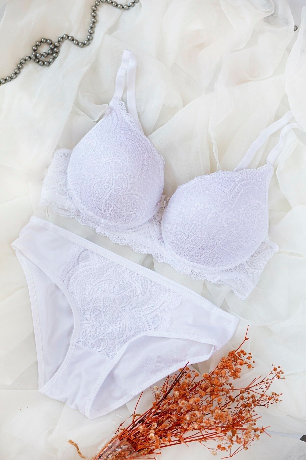 Kadın Beyaz Dolgulu Dantel Sütyen Ve Külot Takım