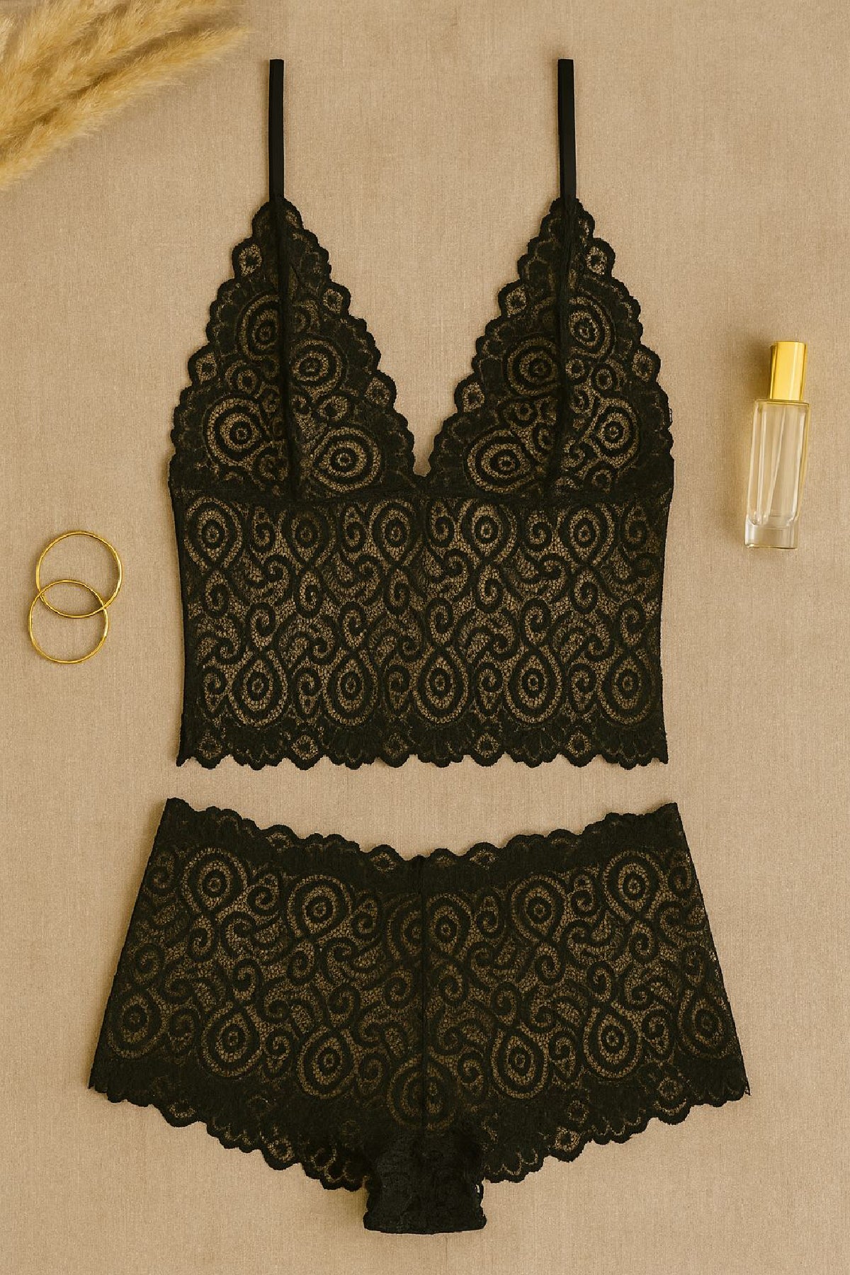 Kadın Bordo Dantel Bralet Şort Takımı – Asil ve Sofistike İç Giyim