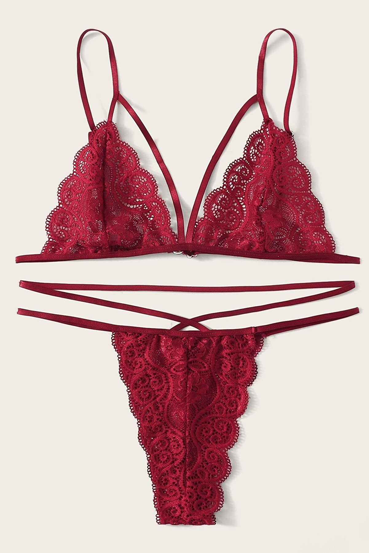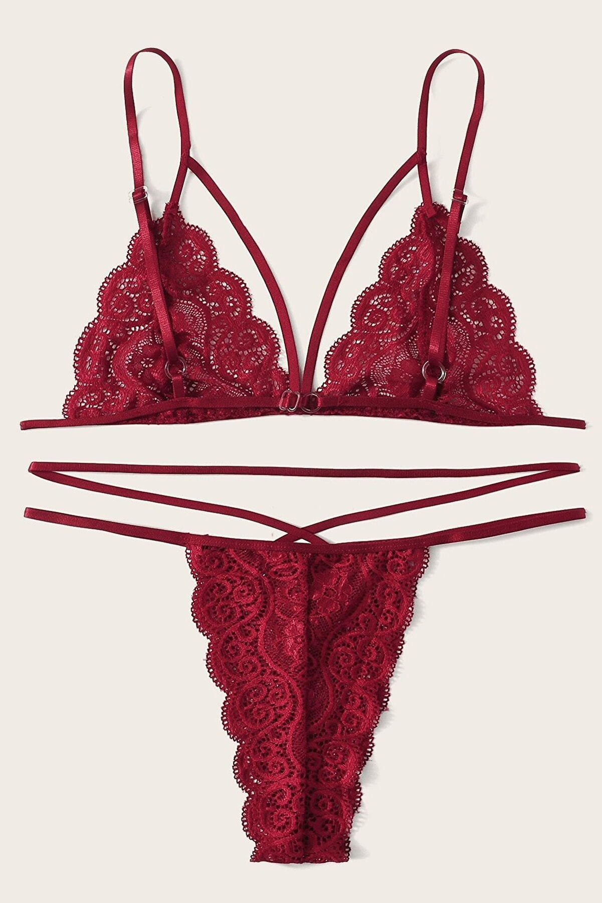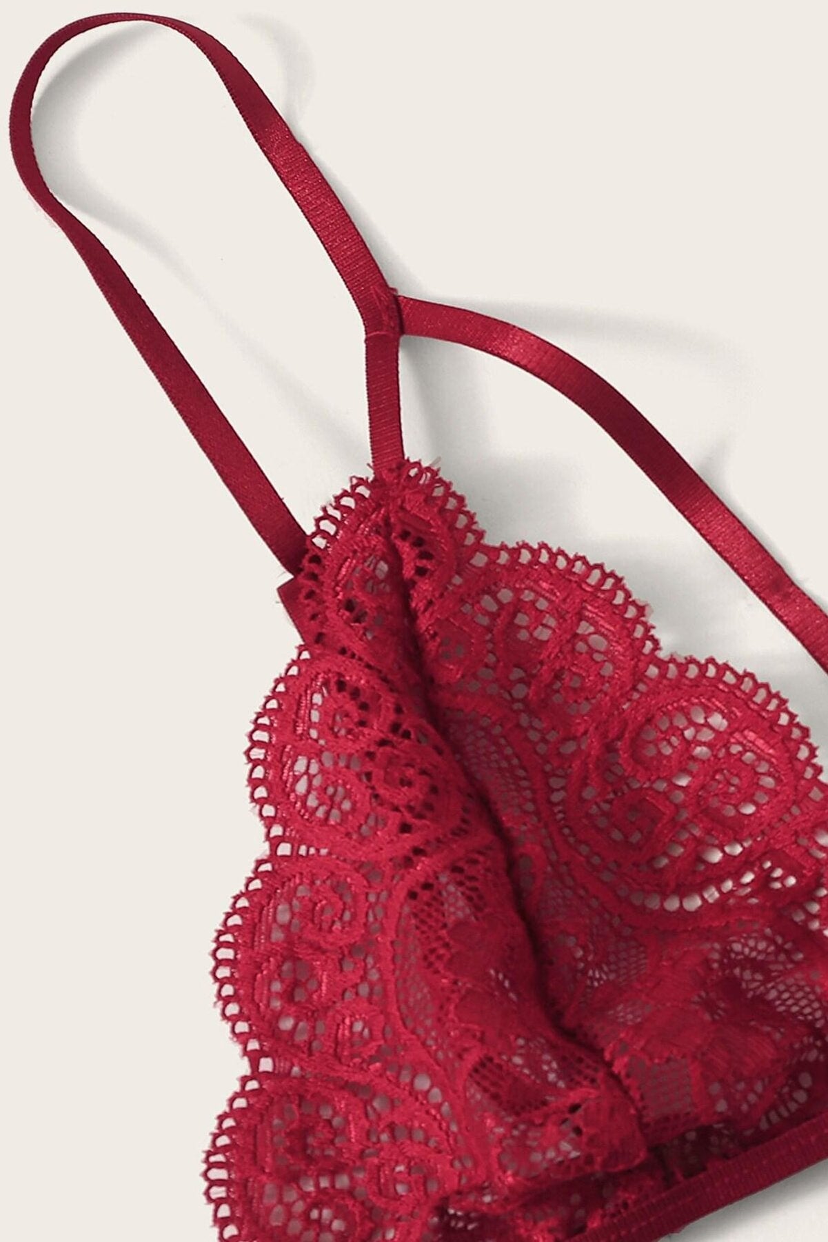 Kadın Bordo Dantel Sütyen Külot Takımı