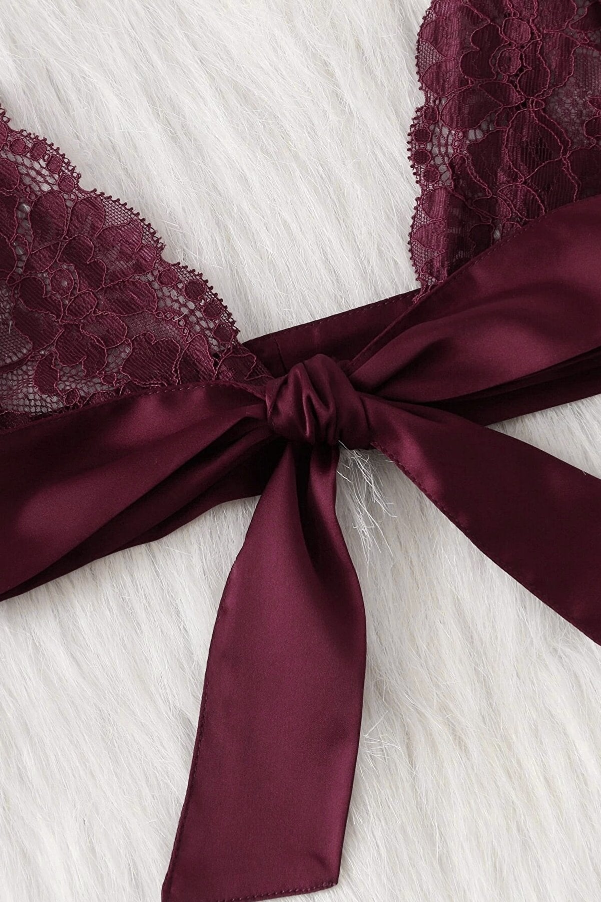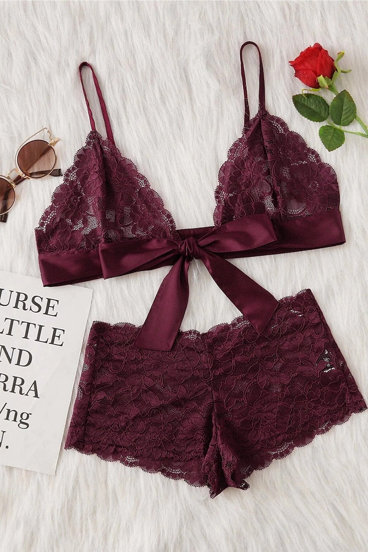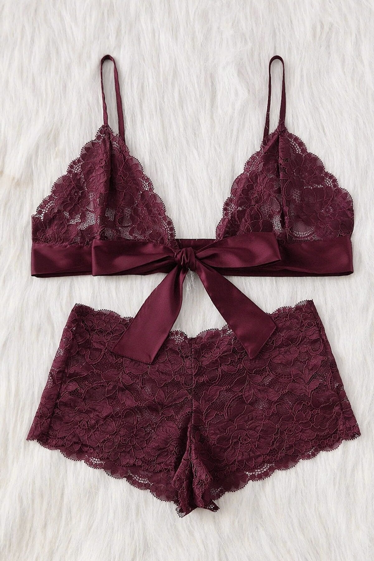 Kadın Bordo Dantelli & Kurdelalı Sütyen Külot Takımı
