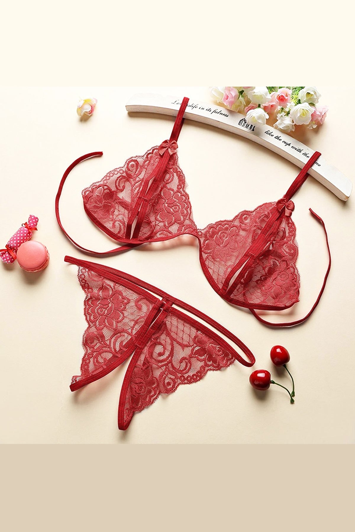 Kadın Bordo Dantelli Sütyen Külot Takımı