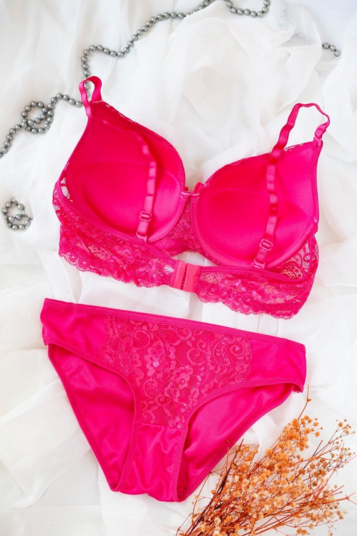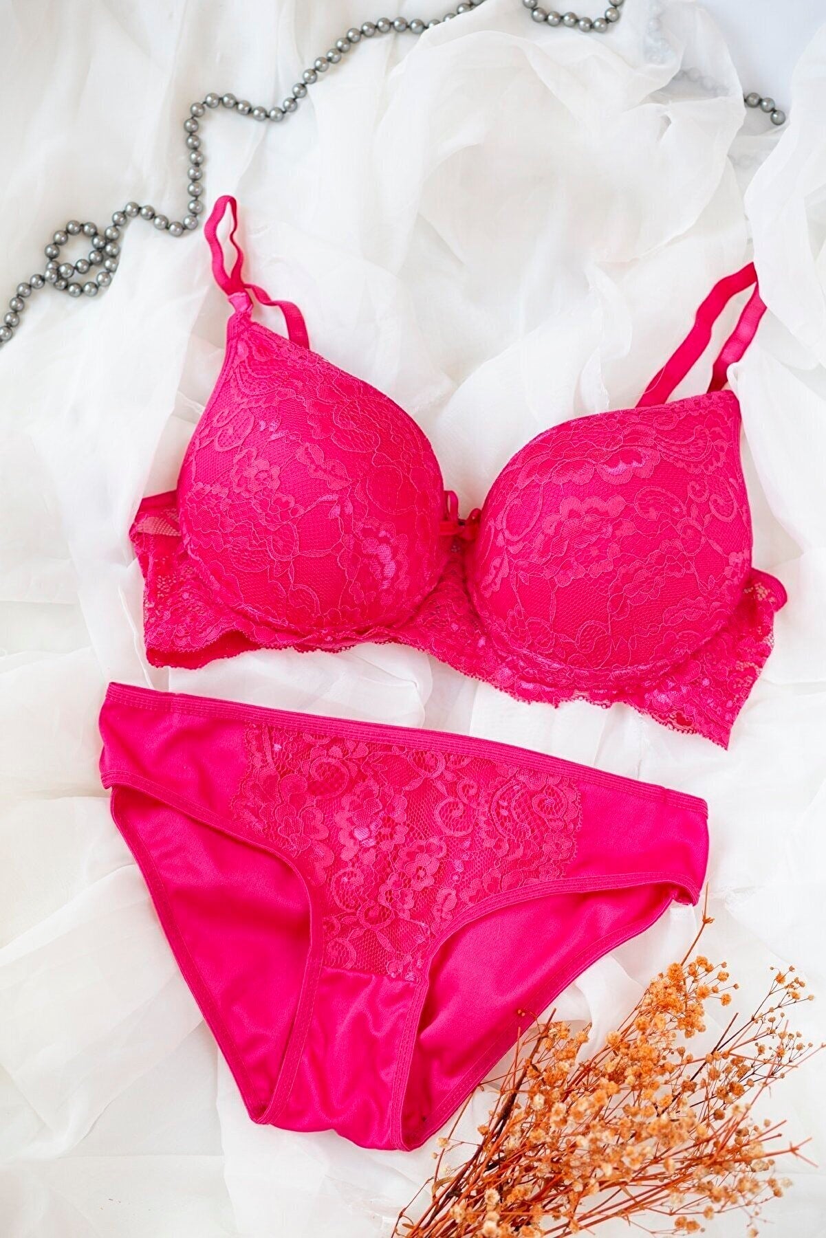 Kadın Fuşya Dolgulu Dantel Sütyen Ve Külot Takım