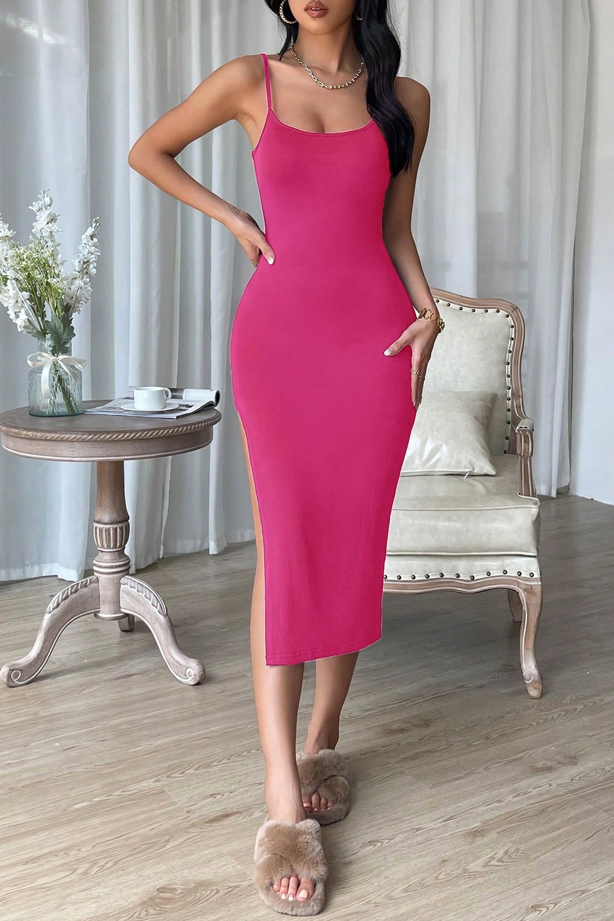 Kadın Fuşya Yırtmaçlı Diz Altı Vücüdu Saran Gecelik