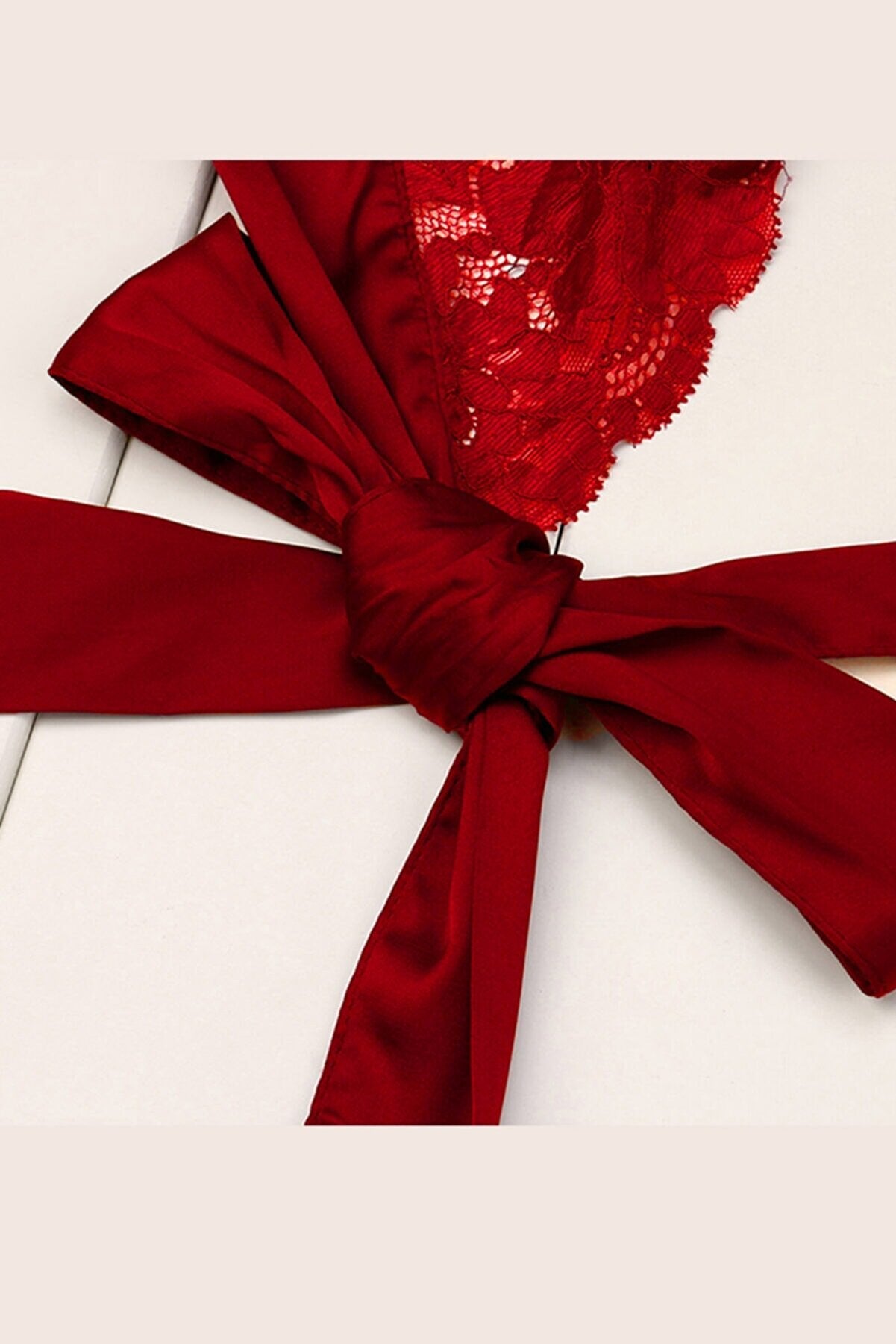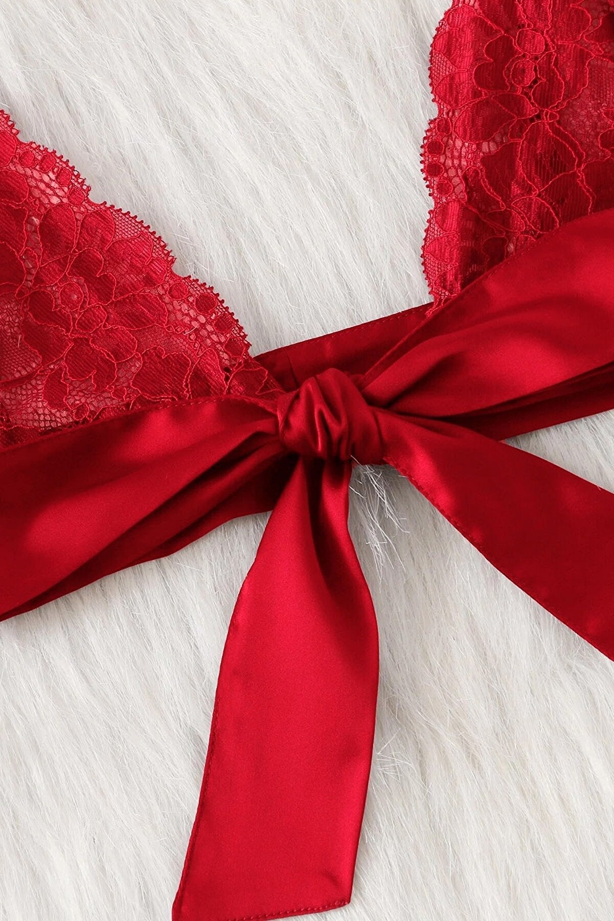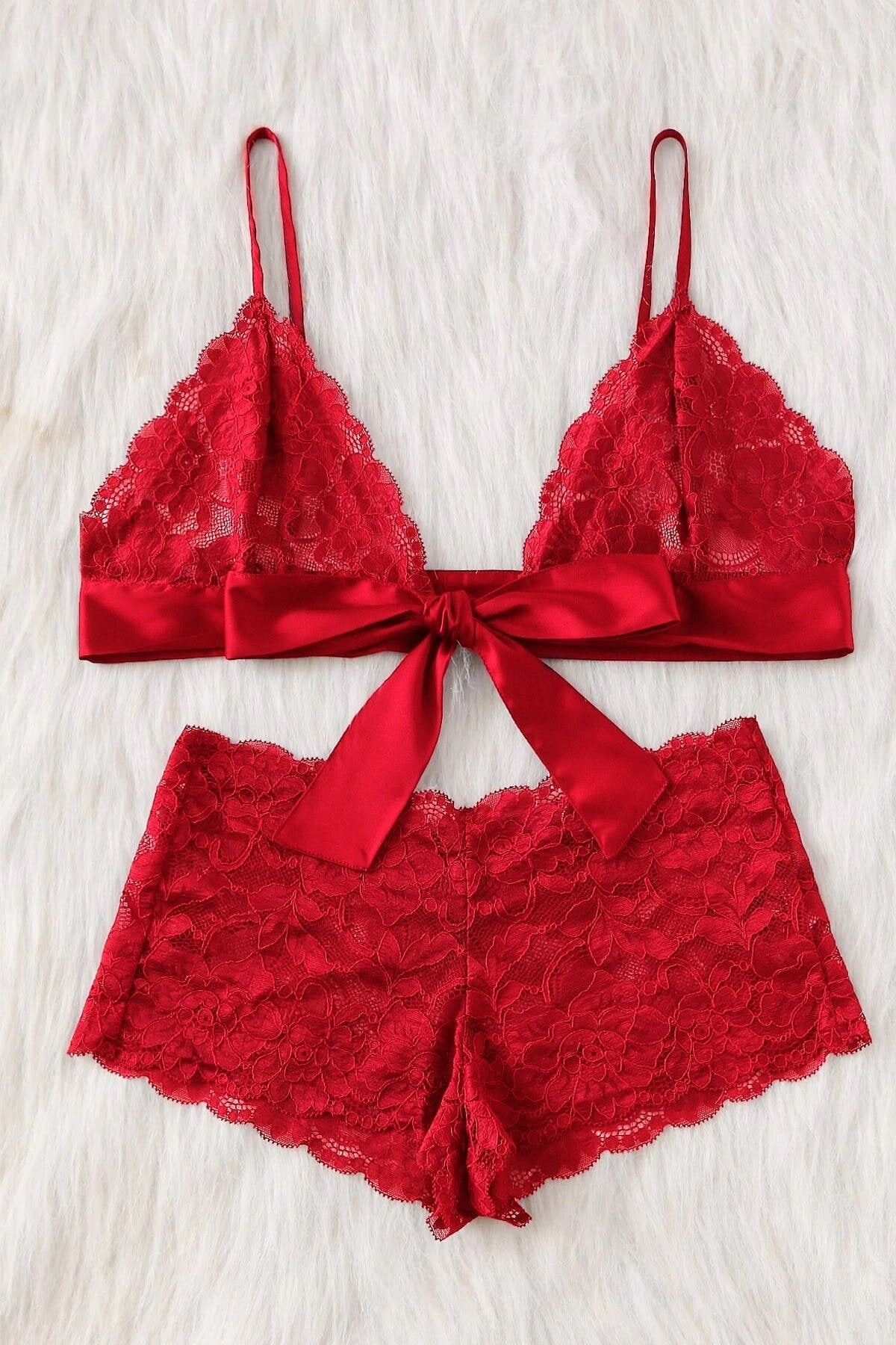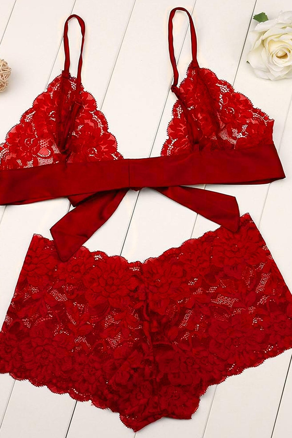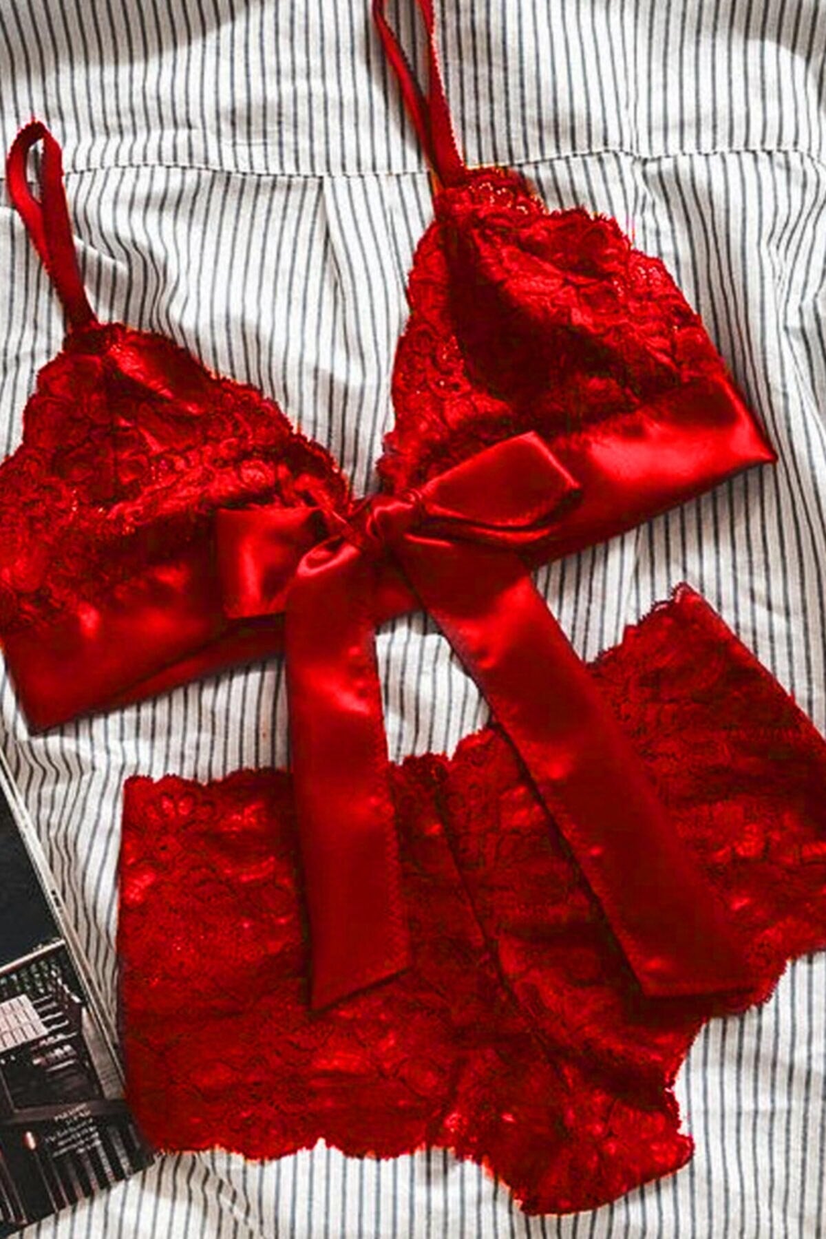 Kadın Kırmızı Dantelli & Kurdelalı Sütyen Külot Takımı