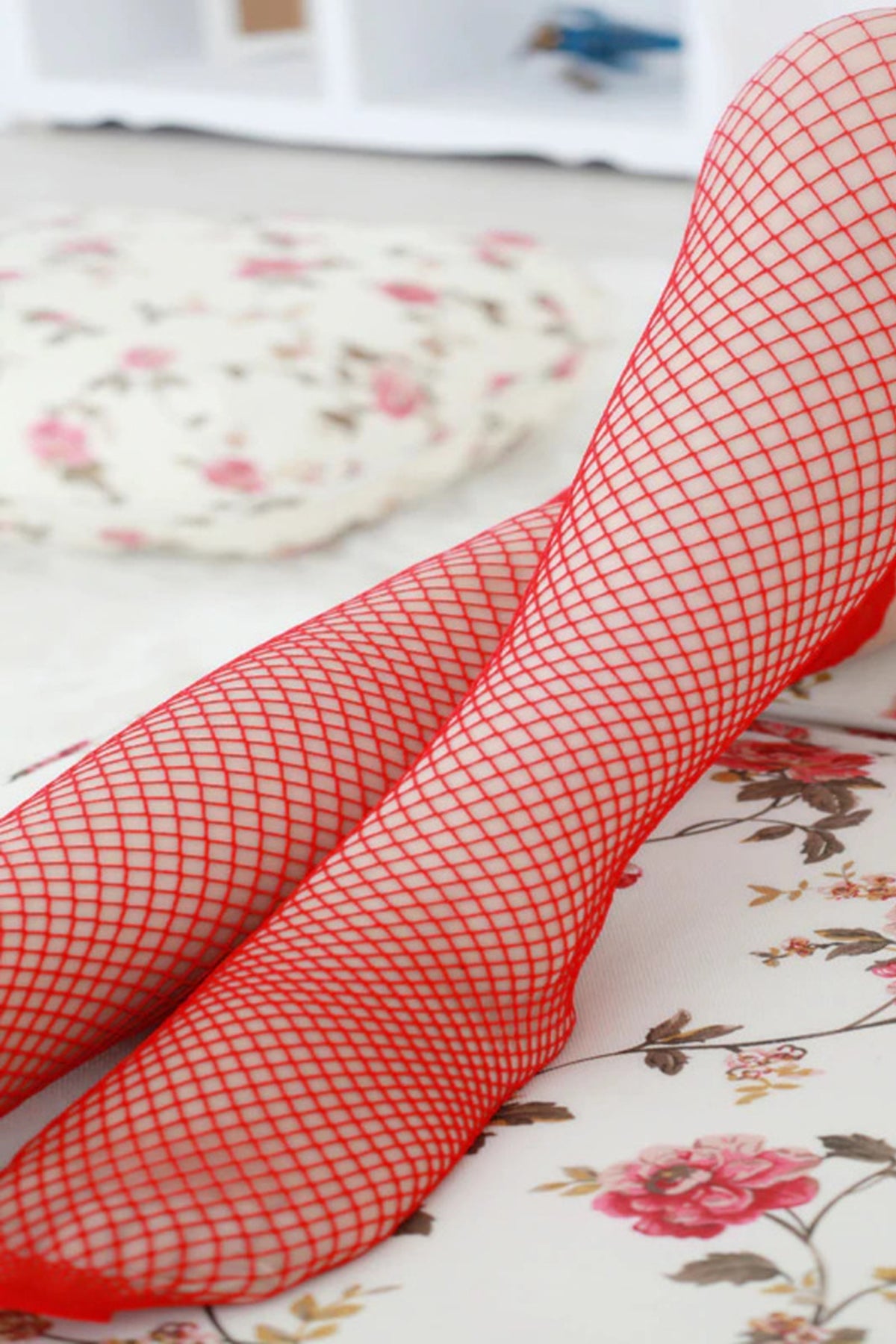 Kadın Kırmızı Üstü Dantel Fileli Jartiyer Çorabı