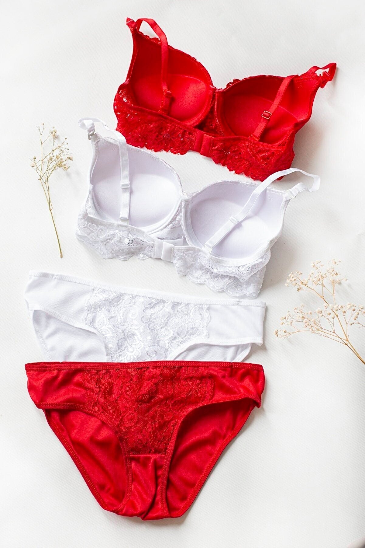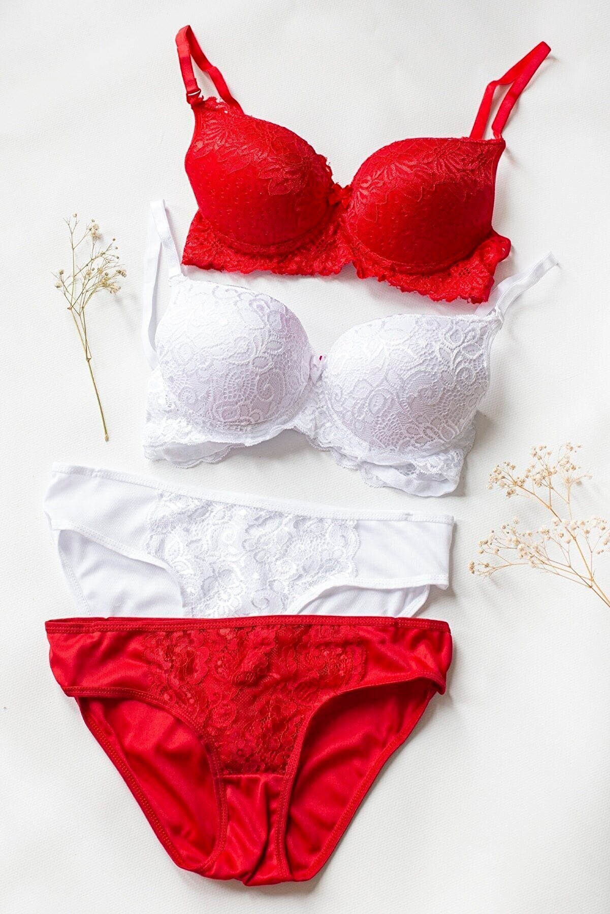 Kadın Kırmızı ve Beyaz Dolgulu Balenli Sütyen Külot 2'li Paket