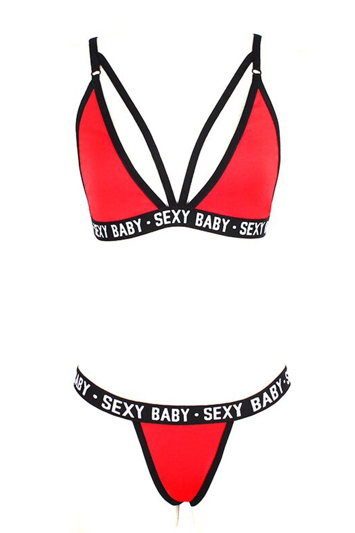 Kadın Kırmızı Yazı Detaylı Ipli Sütyen Takımı