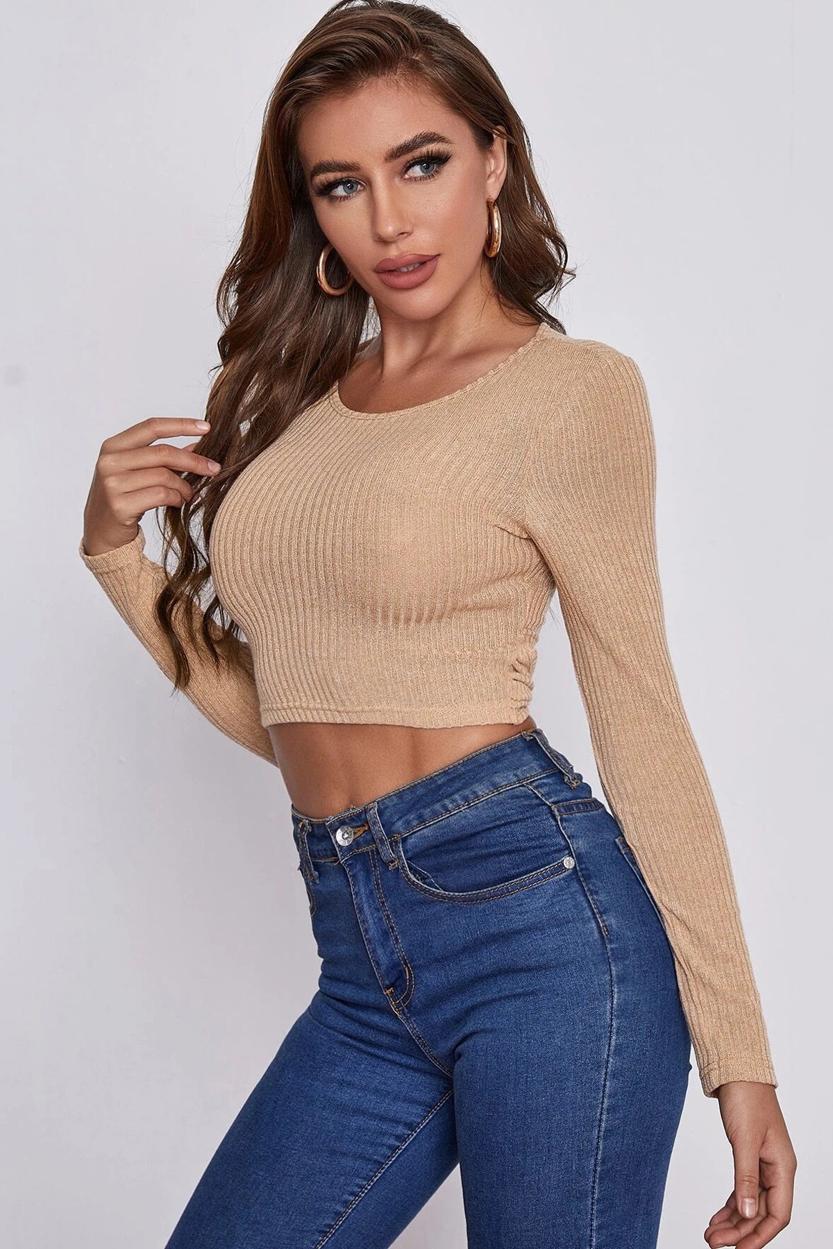 Kadın Krem Uzun Kollu Arkadan Bağlamalı Bluz