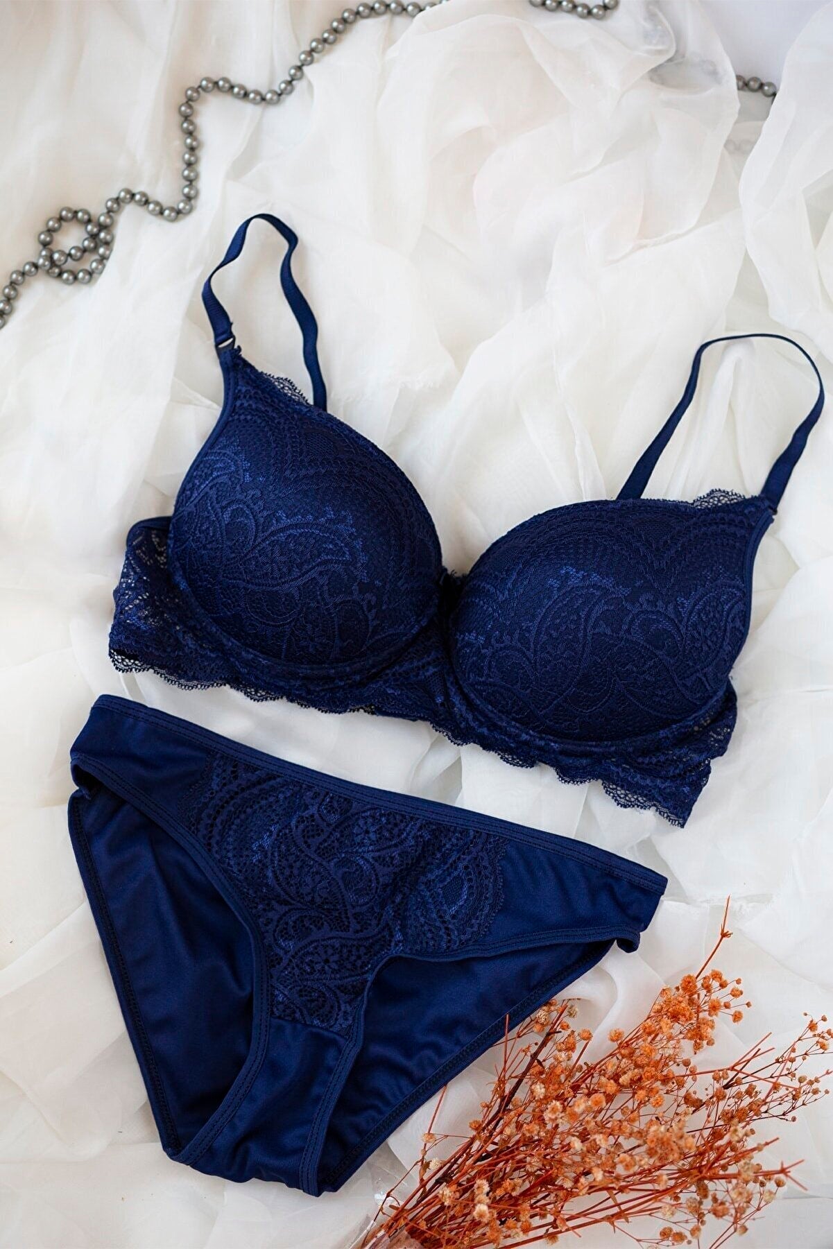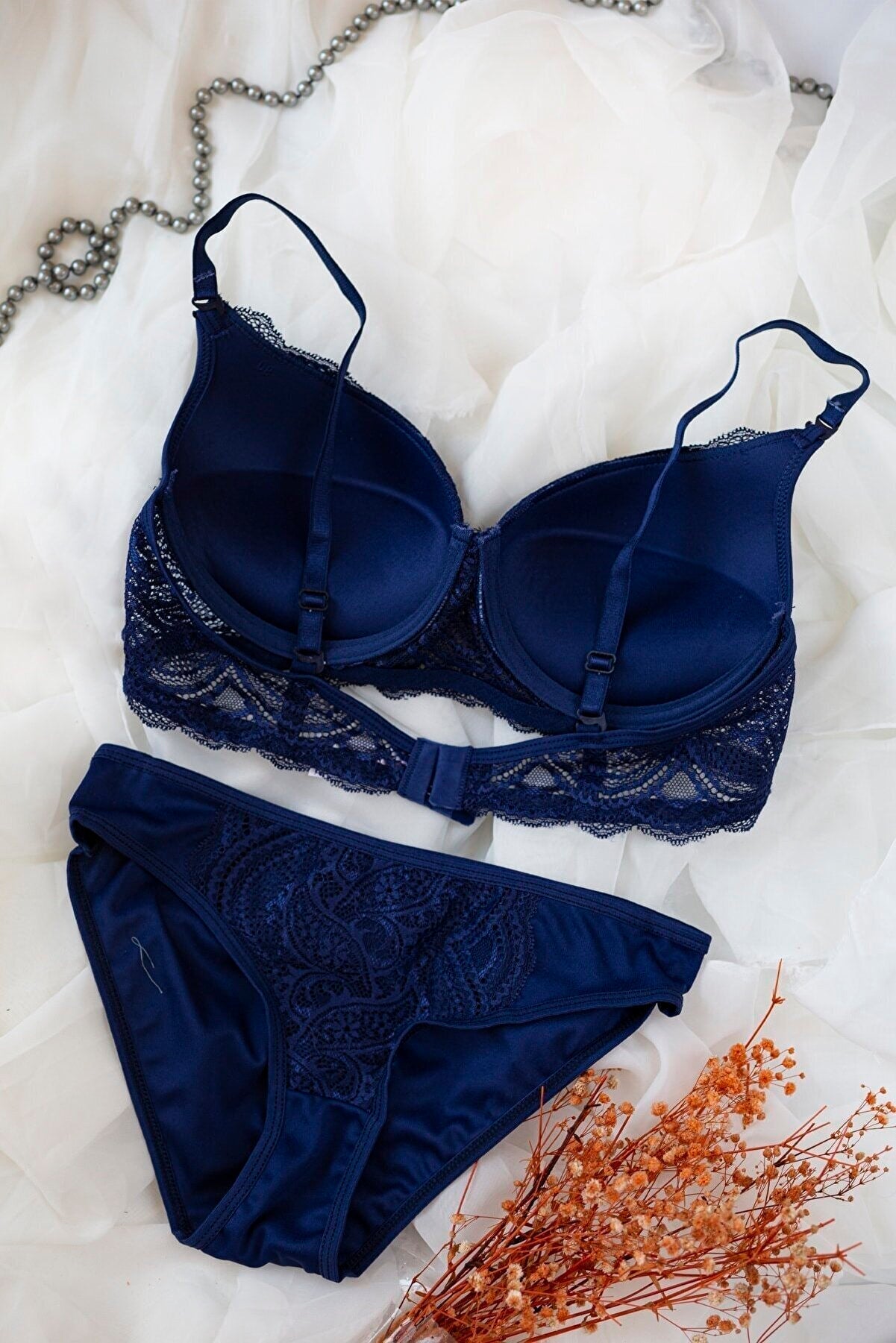 Kadın Lacivert Dolgulu Dantel Sütyen Ve Külot Takım