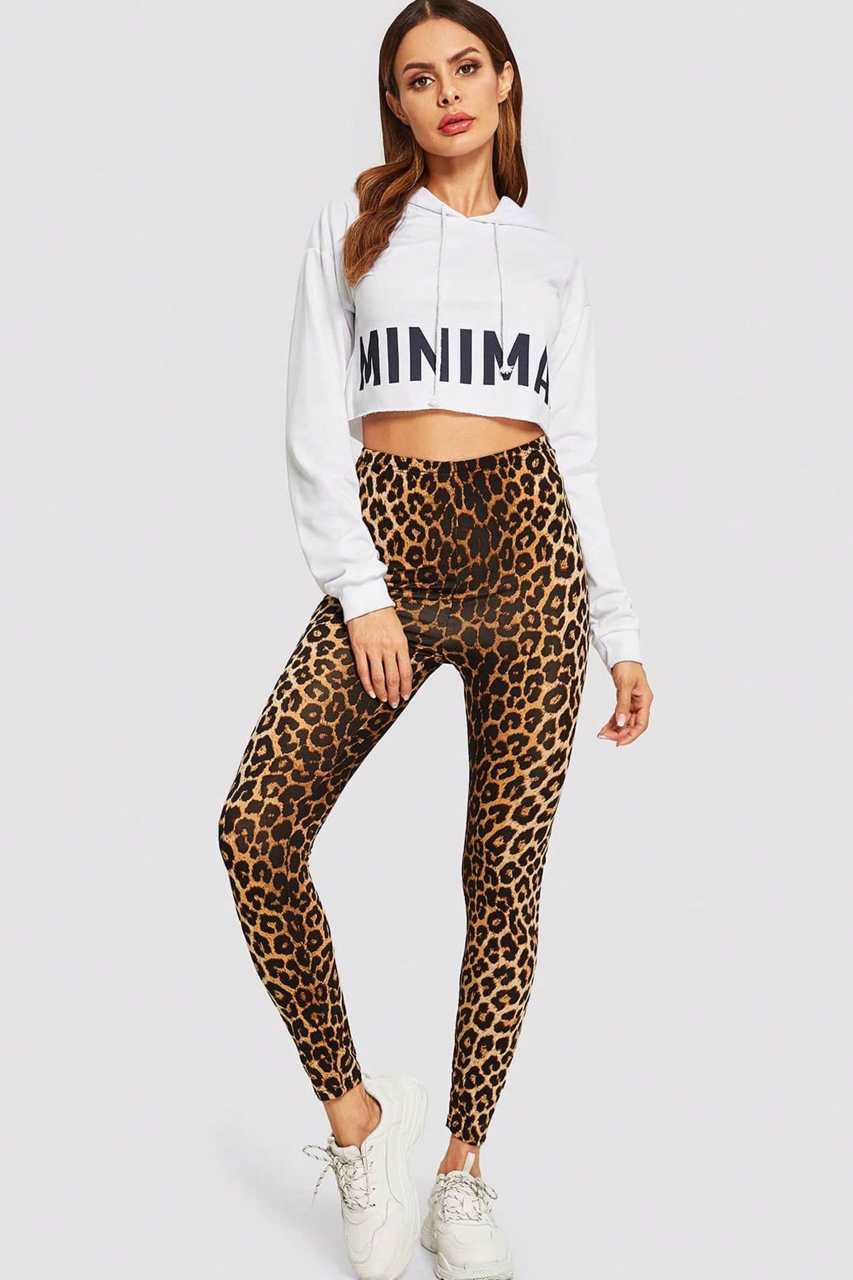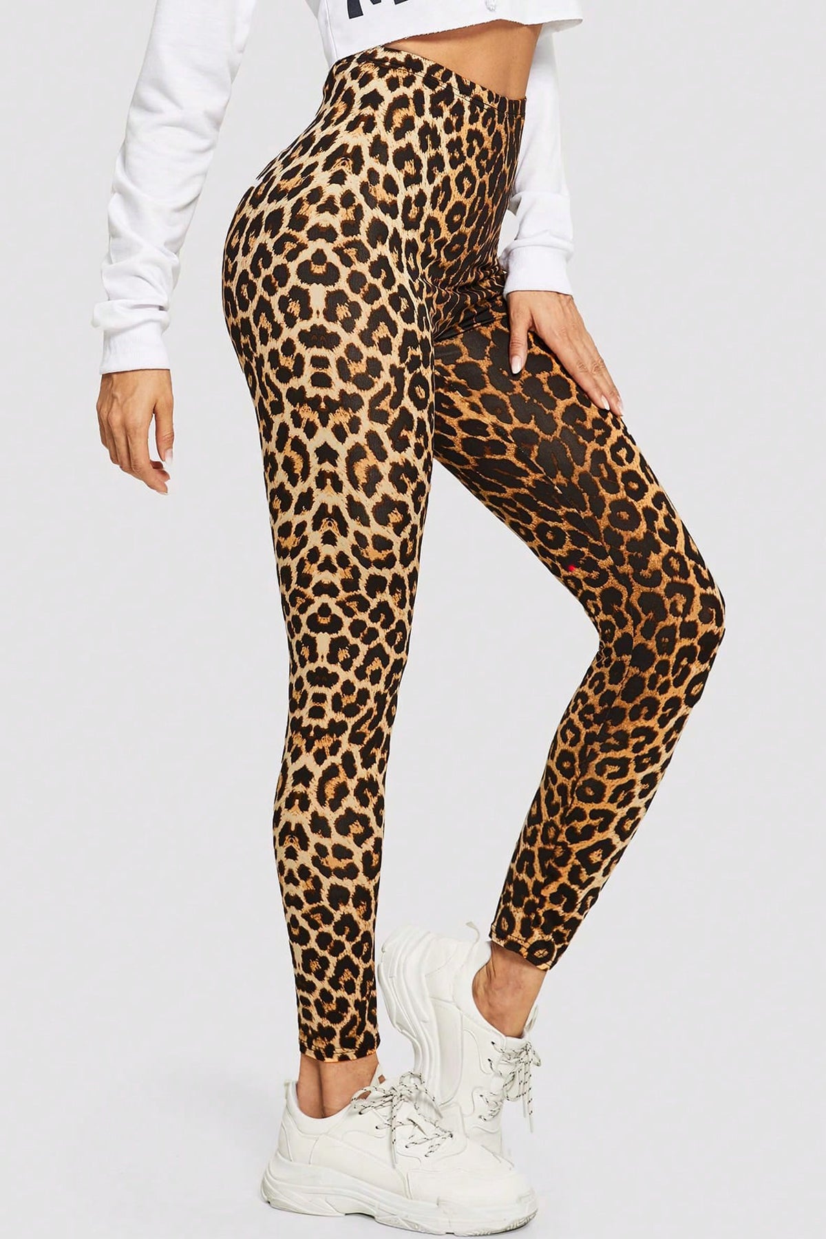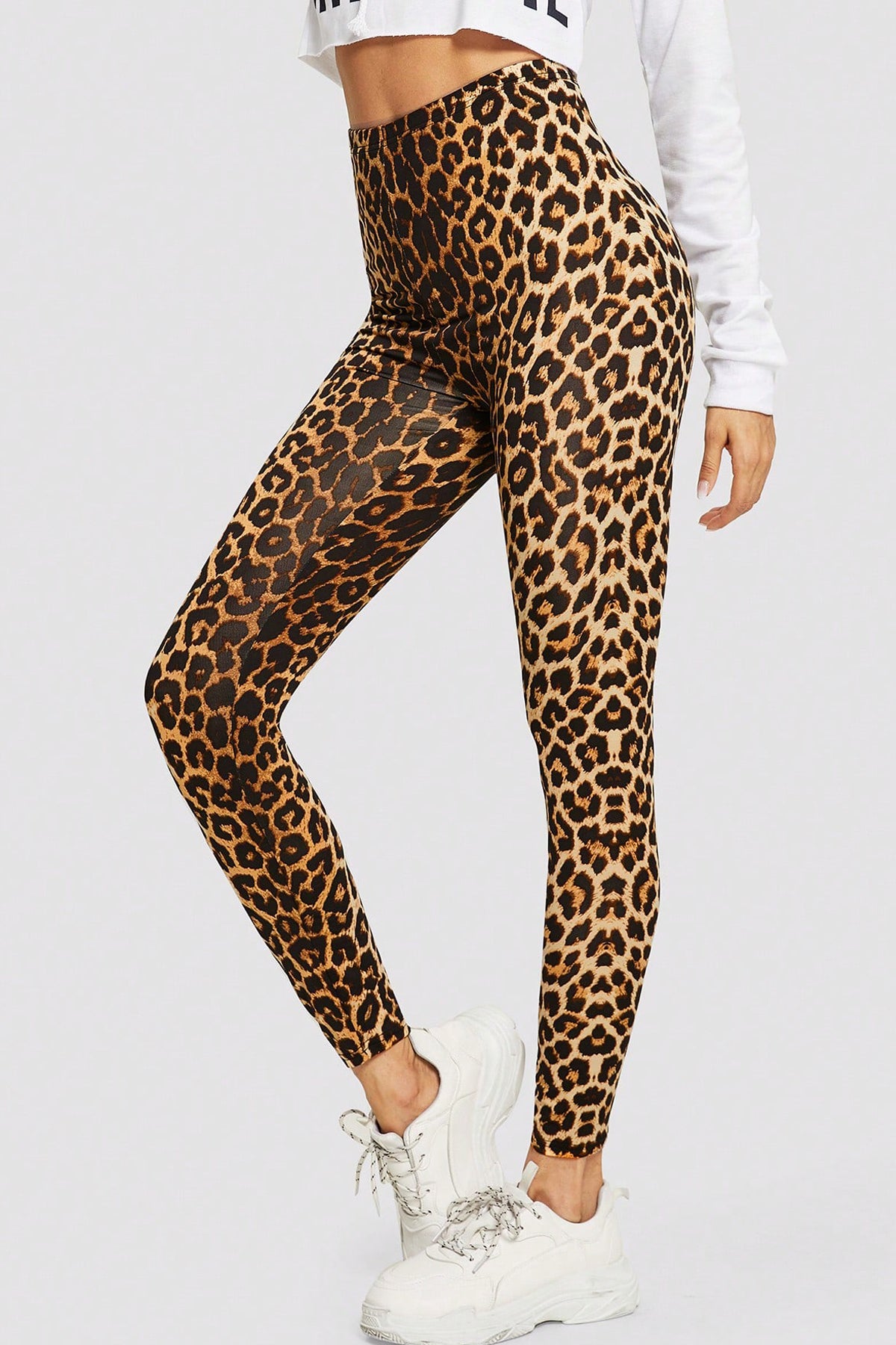 Kadın Leopar Desenli Yüksek Bel Dar Kesim Esnek Tayt