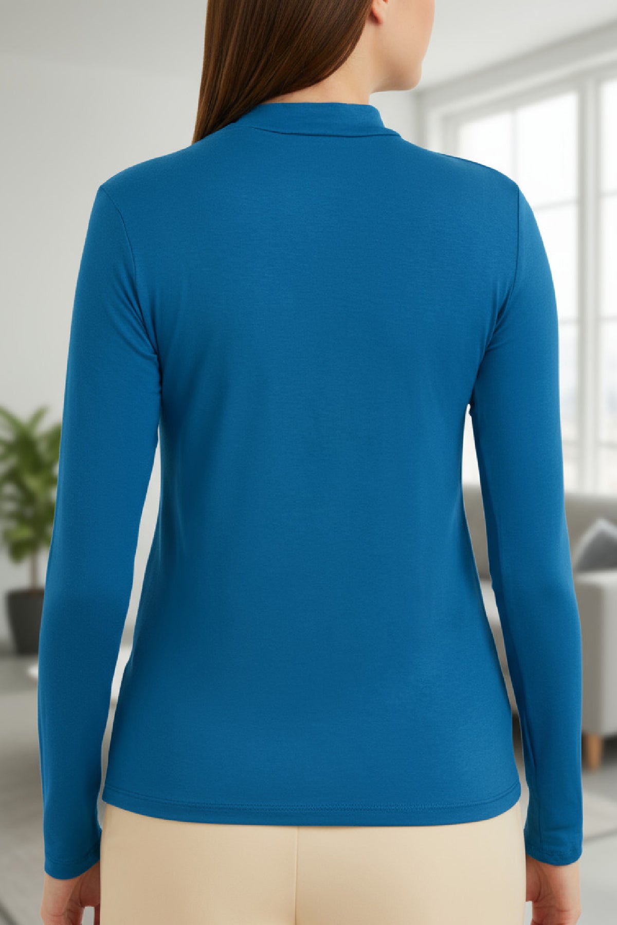 Kadın Mavi Parmak Detaylı Esnek Uzun Kollu Body