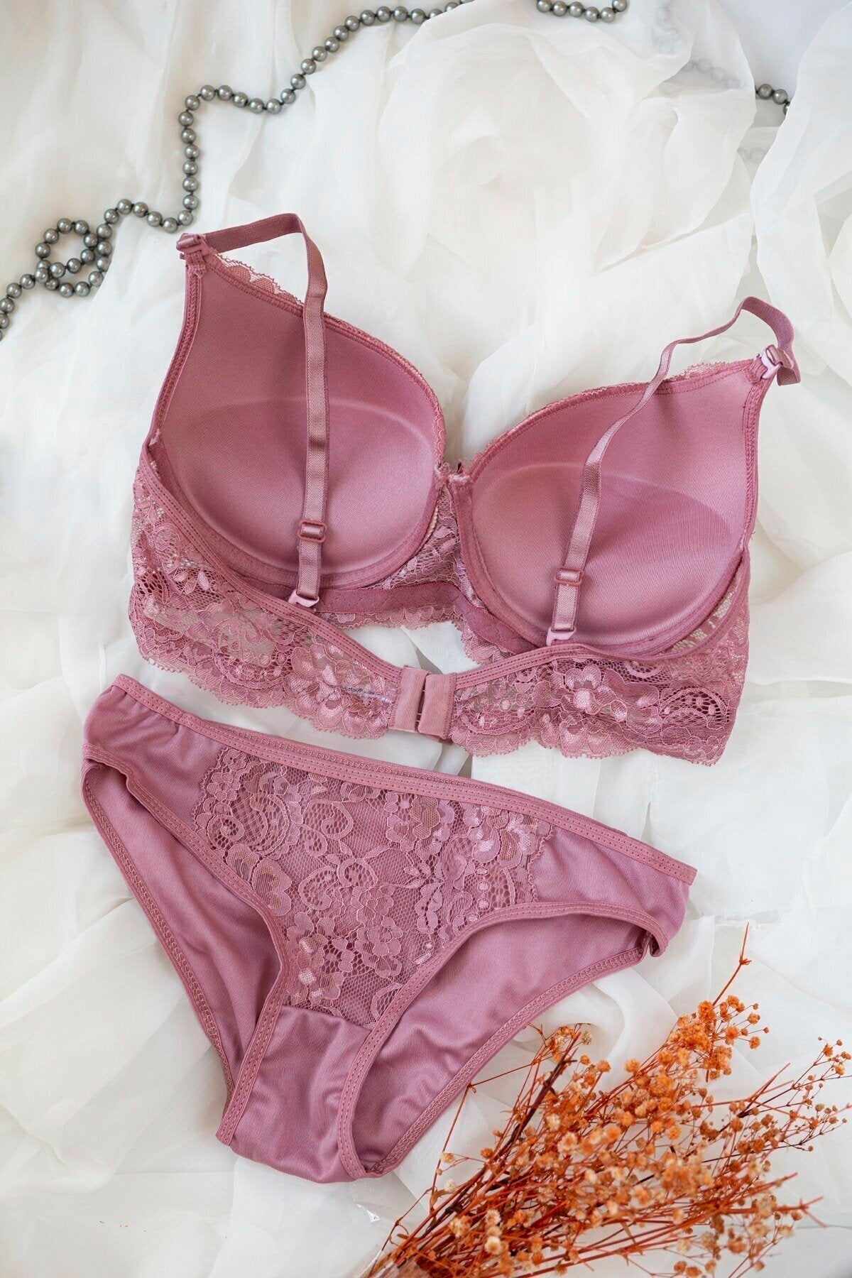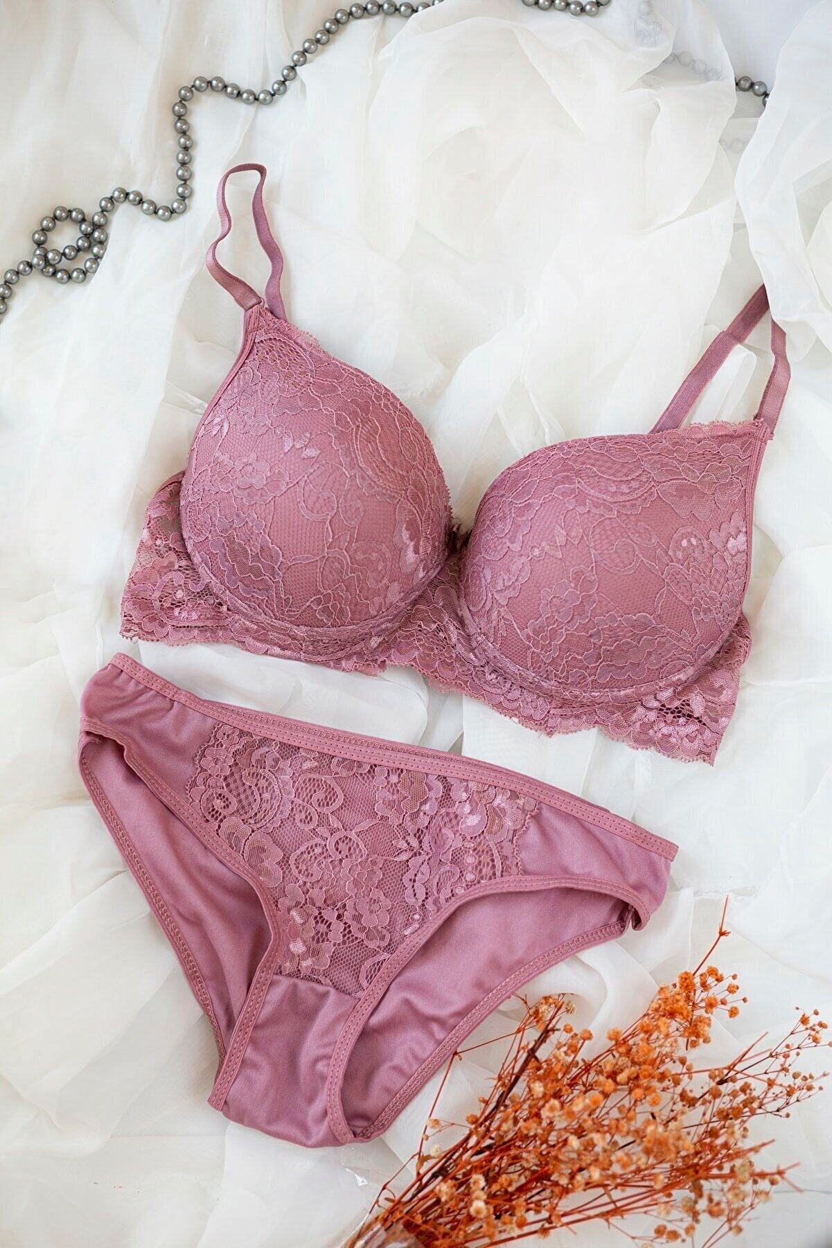 Kadın Pudra Dolgulu Dantel Sütyen Ve Külot Takım