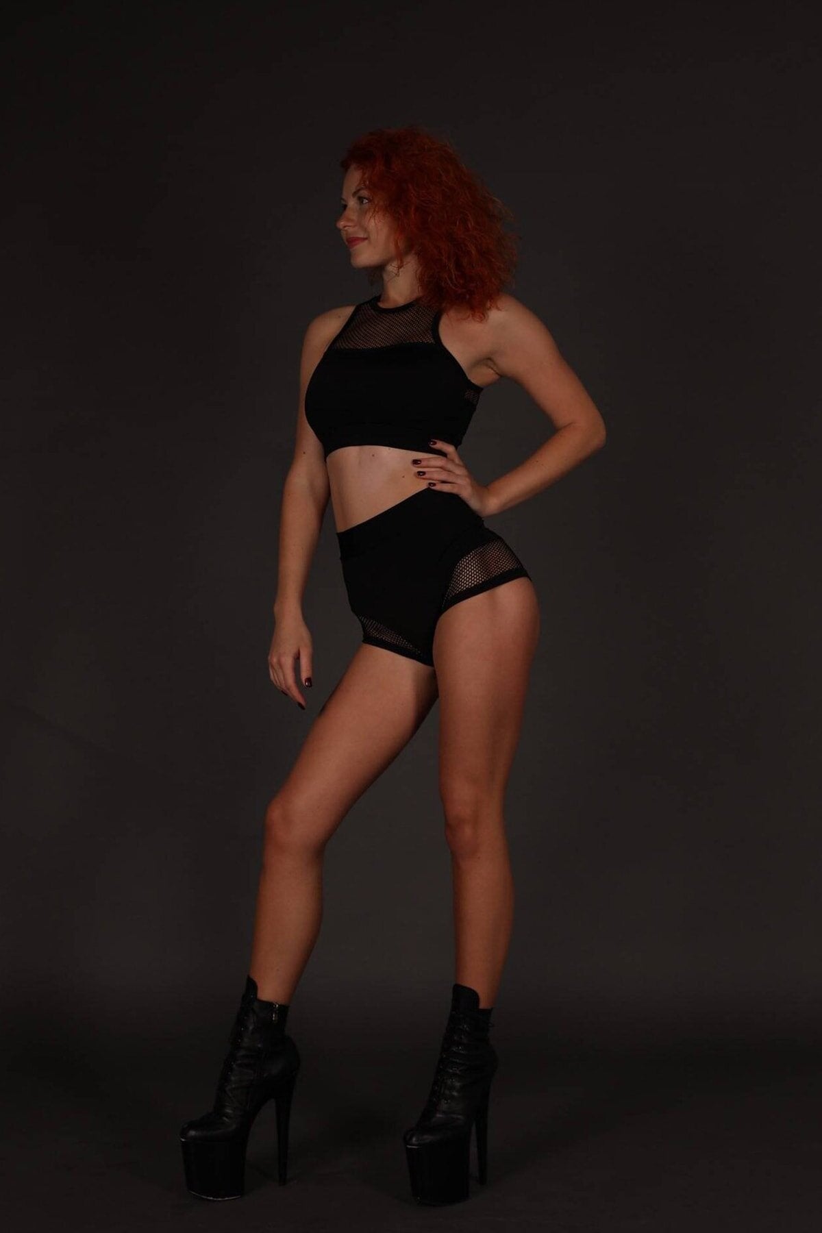 Kadın Siyah Alt Üst Fileli Yüksek Bel Sütyen Takımı