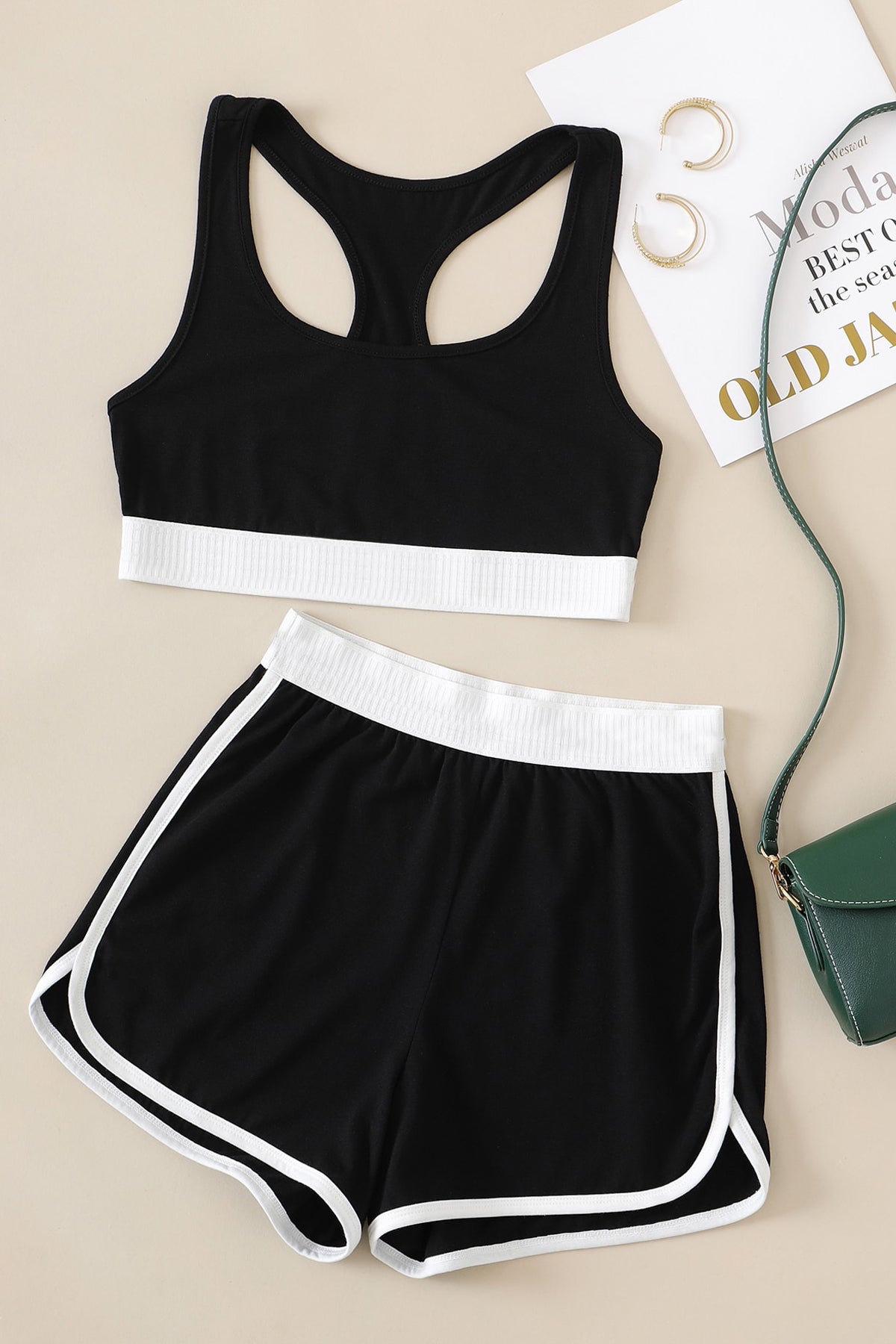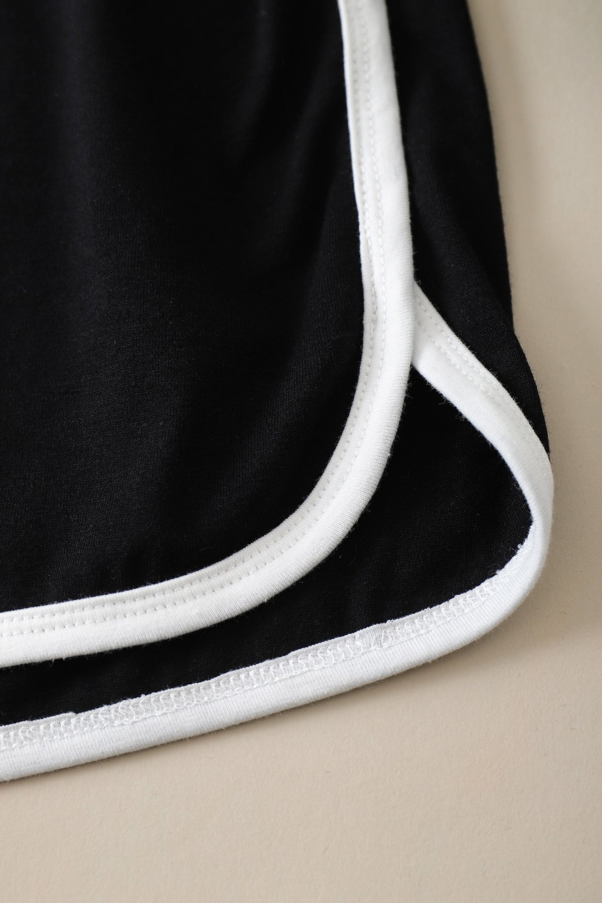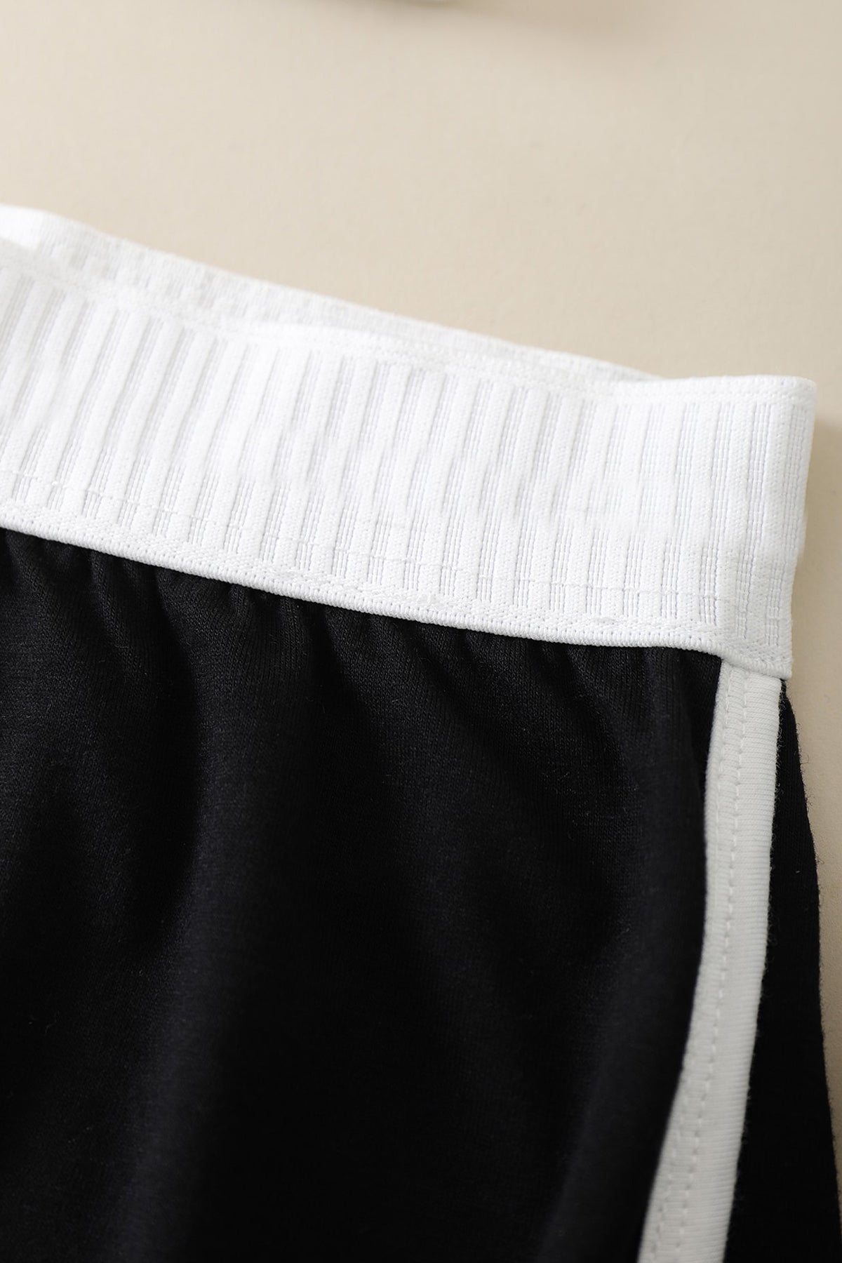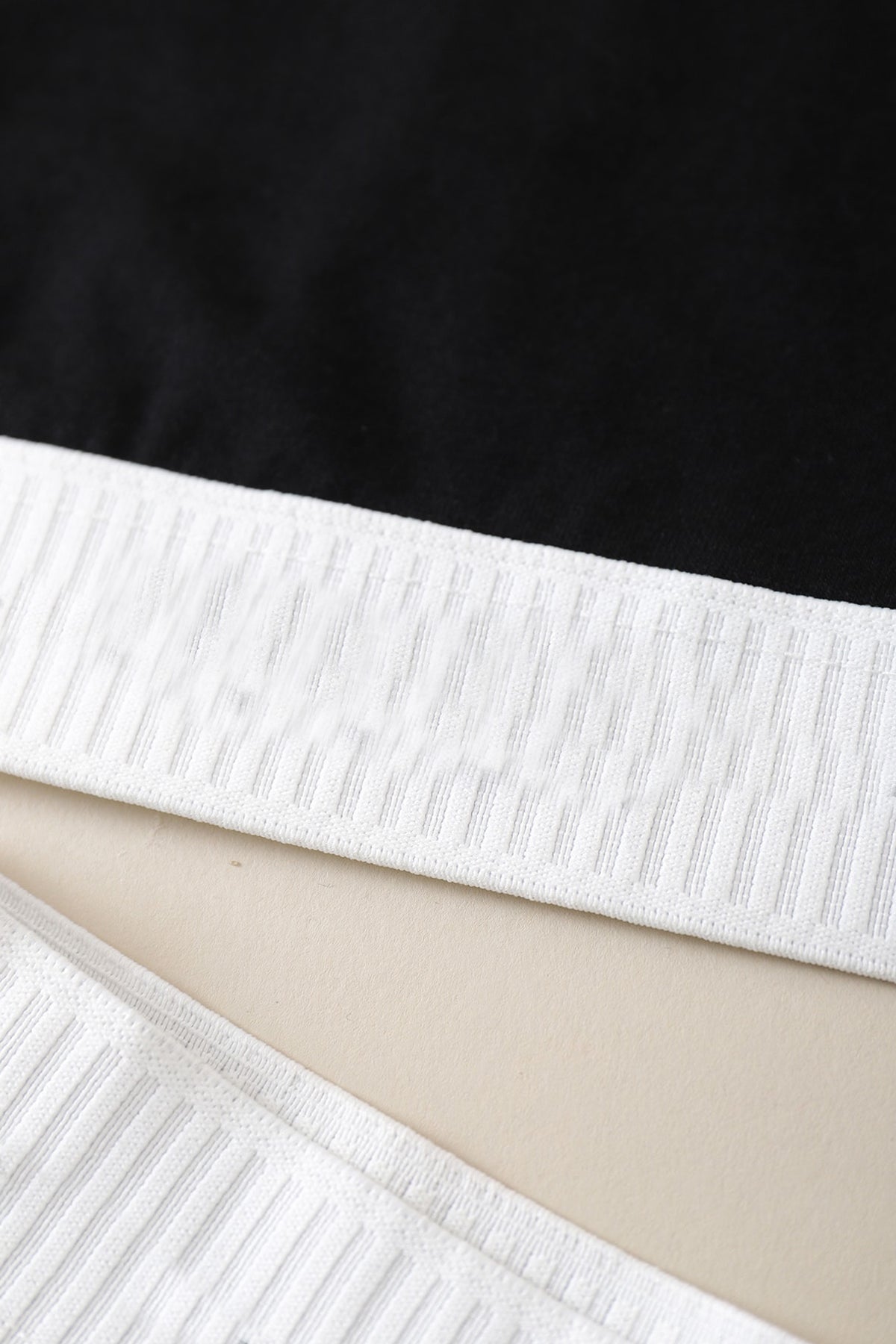 Kadın Siyah Beyaz Lastikli Çapraz Crop Toplu Şortlu Gecelik Takım