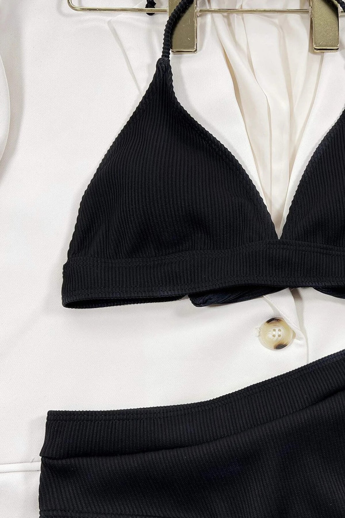 Kadın Siyah Boyundan Ve Belden Bağlamalı Yüksek Bel Bikini Takımı