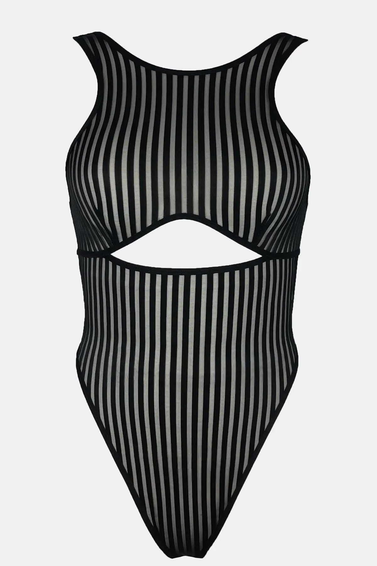 Kadın Siyah Cut-Out Detaylı Transparan Çizgili Gecelik