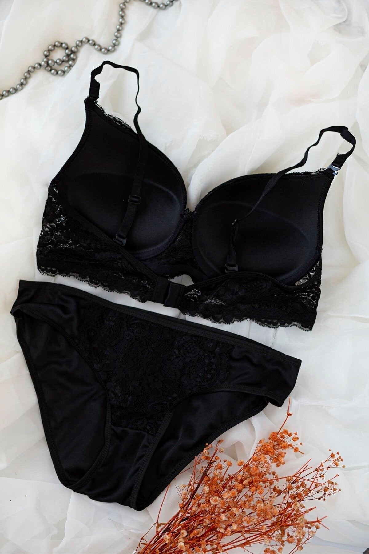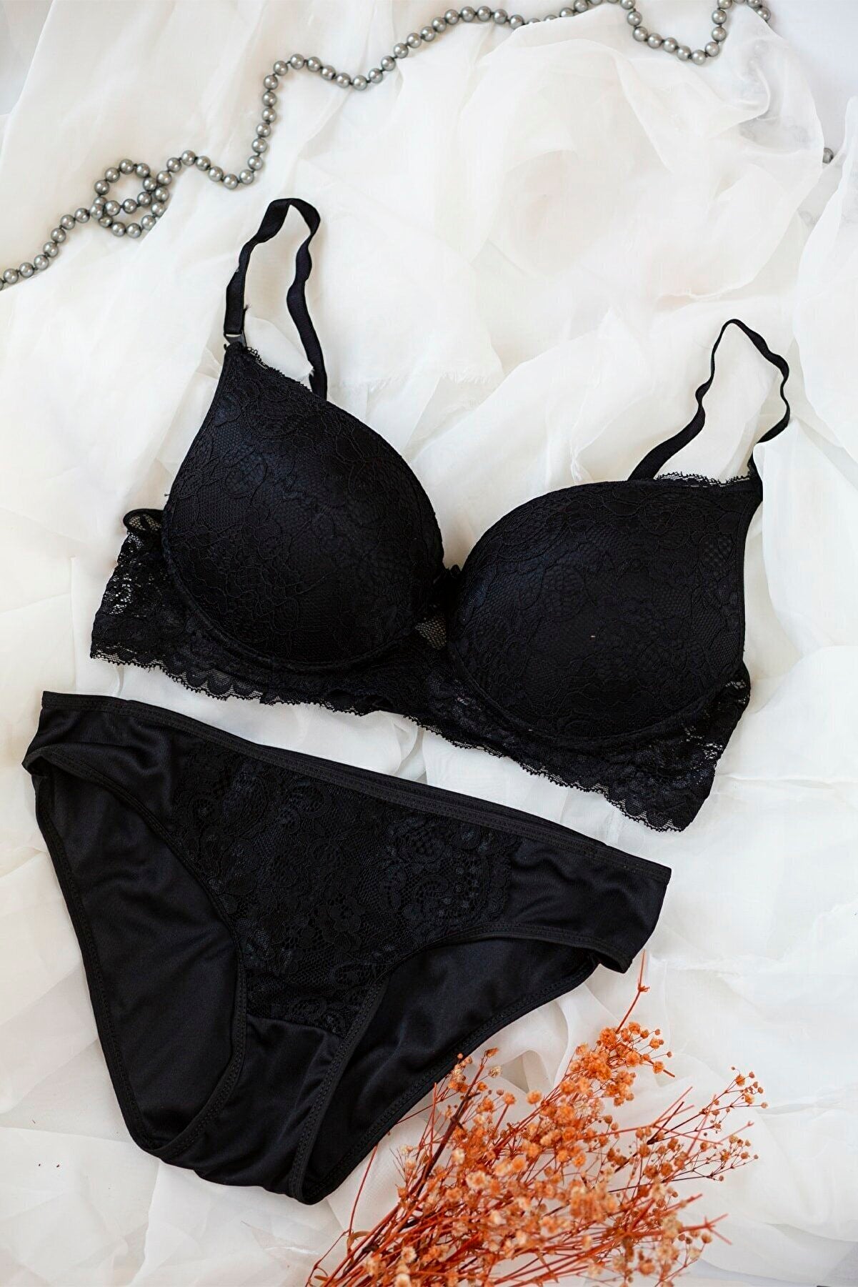 Kadın Siyah Dolgulu Dantel Sütyen Ve Külot Takım