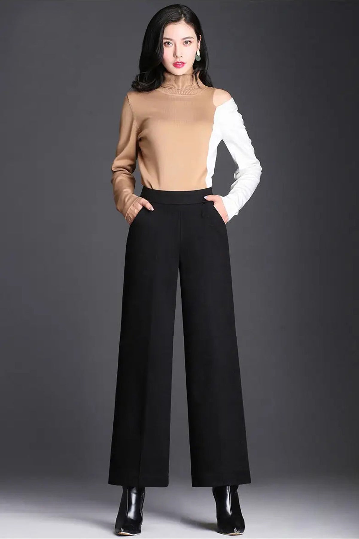 Kadın Siyah Geniş Paça Vintage Palazzo Pantolon