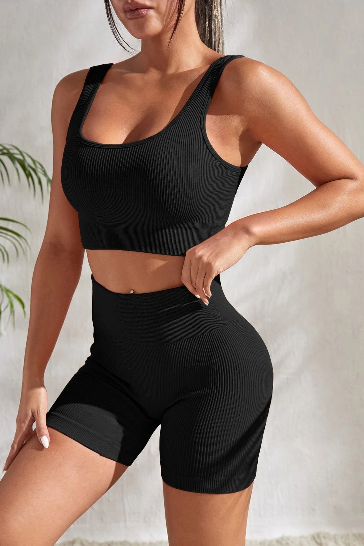 Kadın Siyah Kalın Askılı Yüksek Bel Şortlu Gecelik Takımı