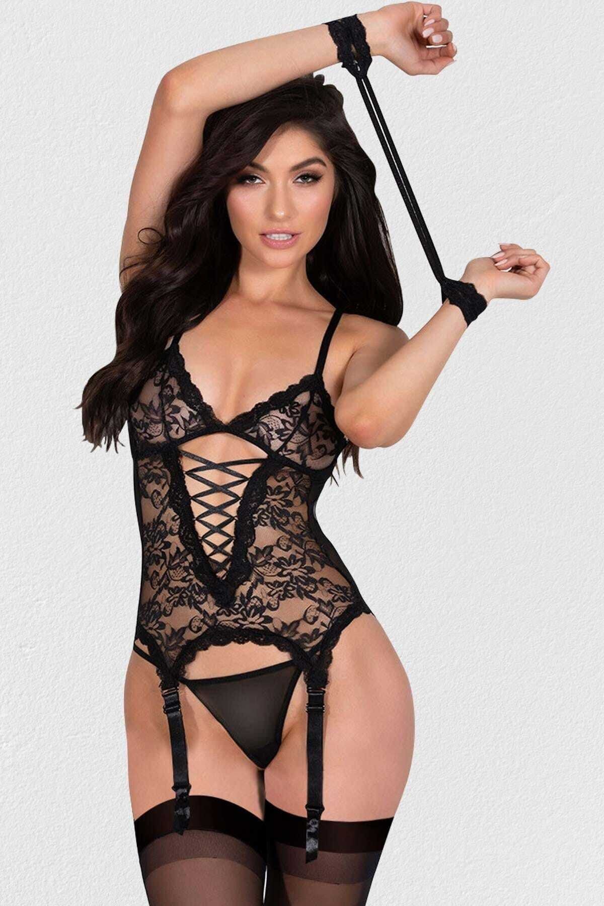 Kadın Siyah Kelepçeli Dantel Jartiyer Takım