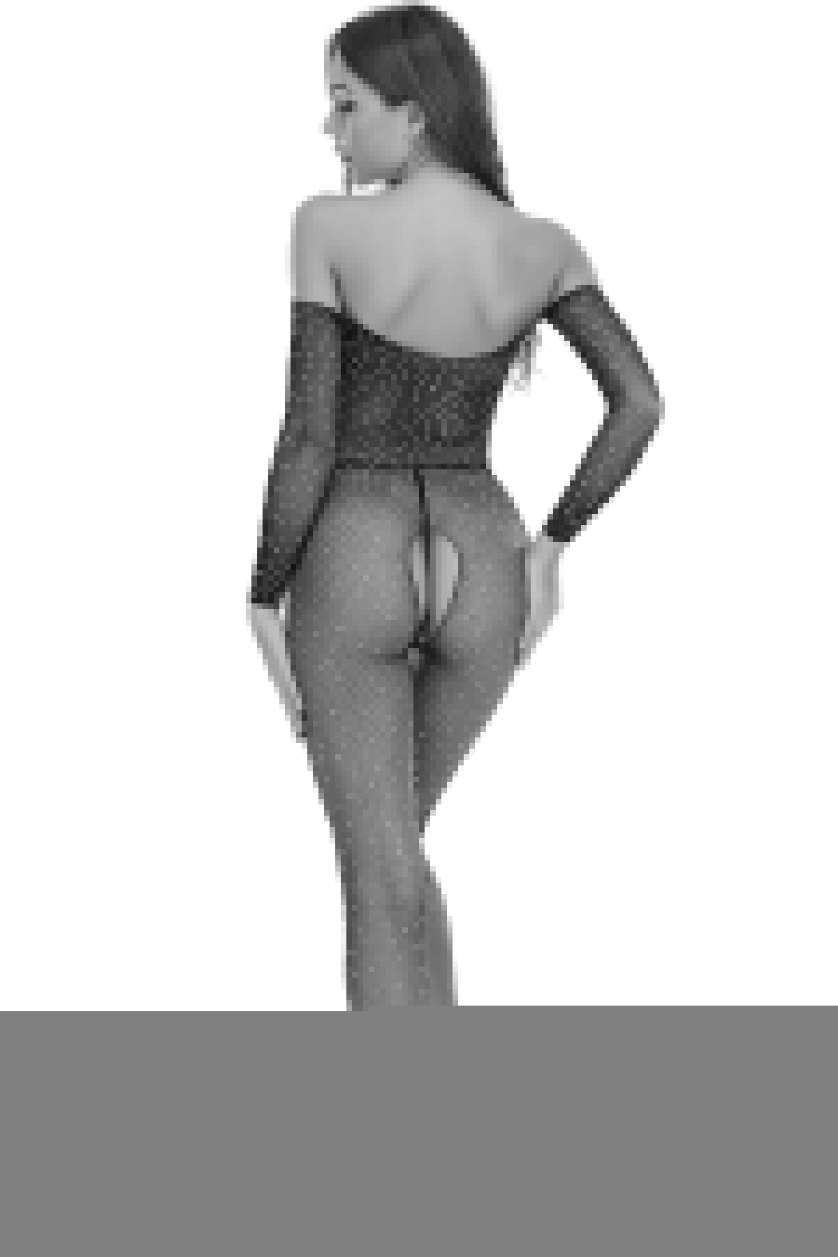 Kadın Siyah Taşlı Özel Bölgesi Açık Fantezi Vücut Çorabı