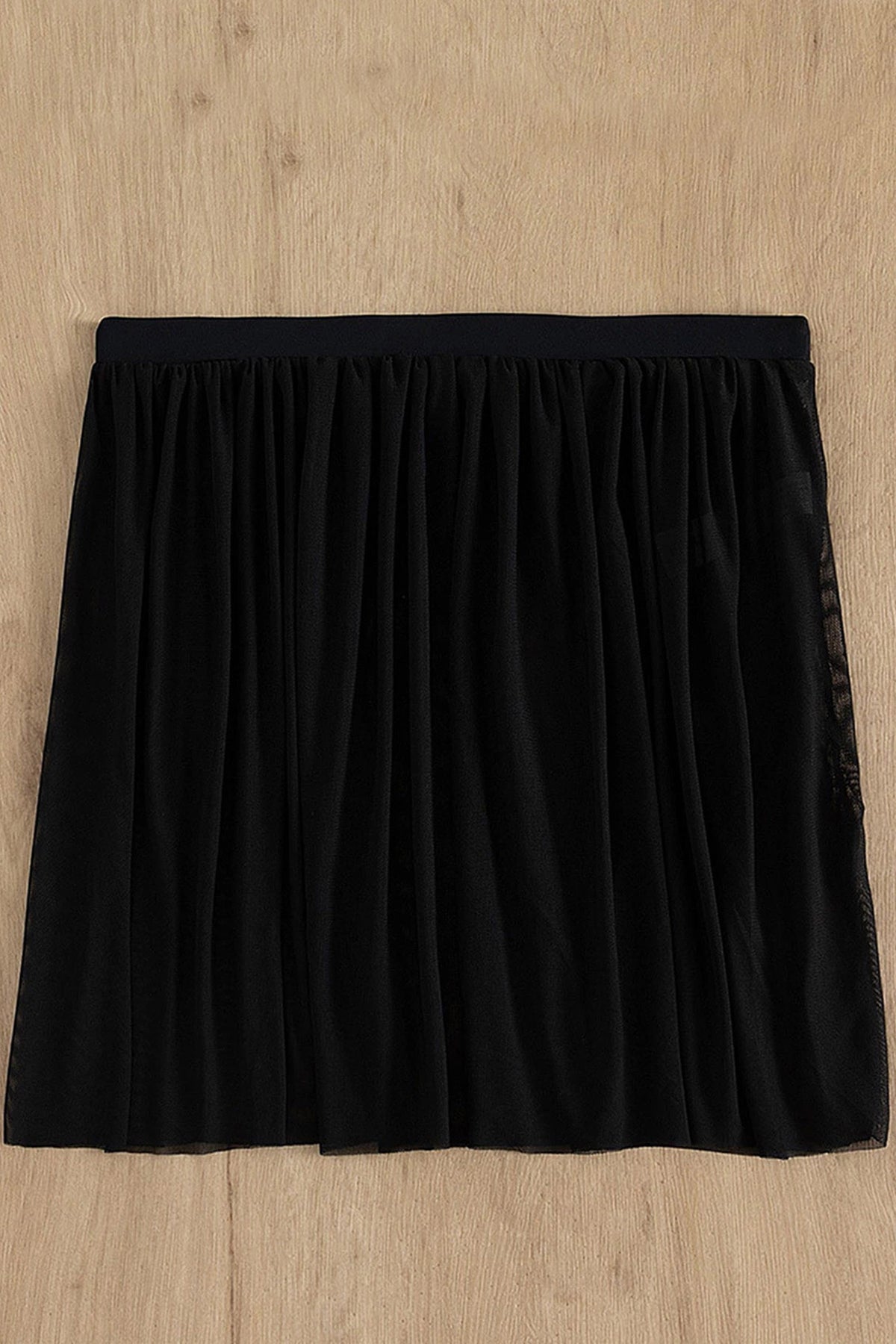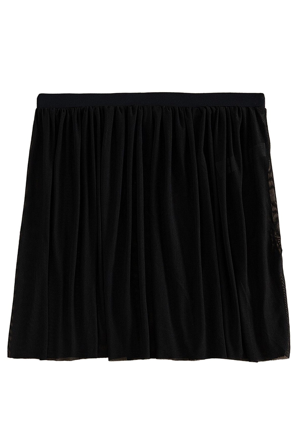 Kadın Siyah Tül Beli Lastikli Etek Görünümlü Pareo