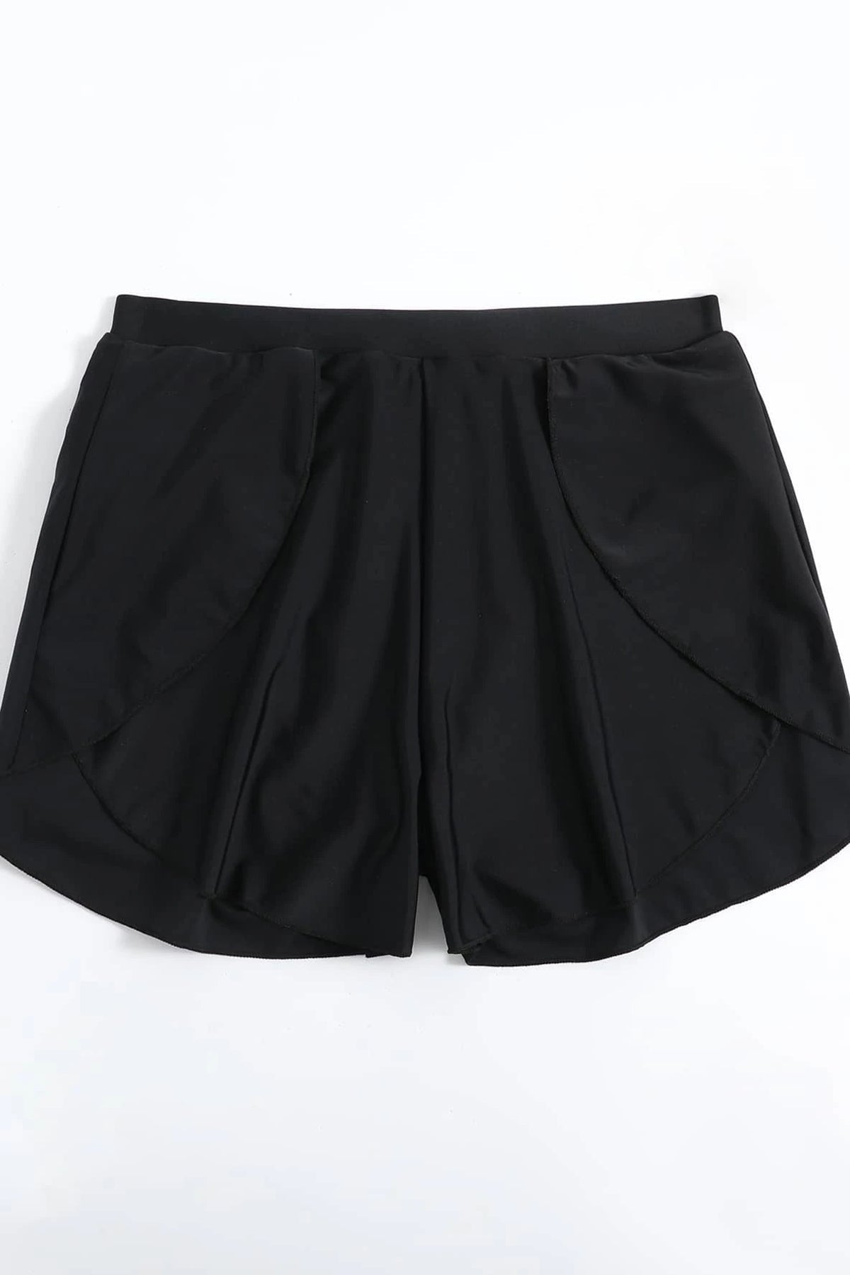 Kadın Siyah Yırtmaçlı Etek Görünümlü Şık Deniz Şortu