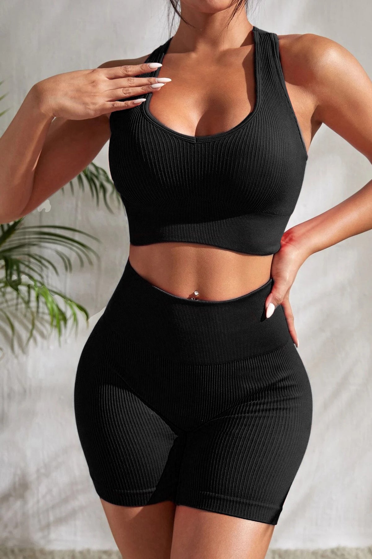 Kadın Siyah Yüksek Bel Çapraz Sırt Detaylı Şortlu Gecelik Takım