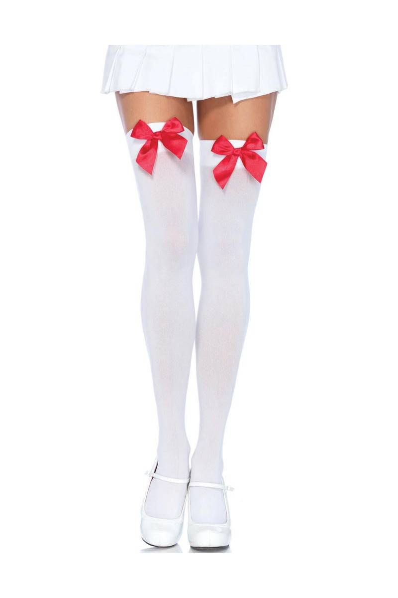 Kırmızı Fiyonklu Beyaz Jartiyer Çorabı