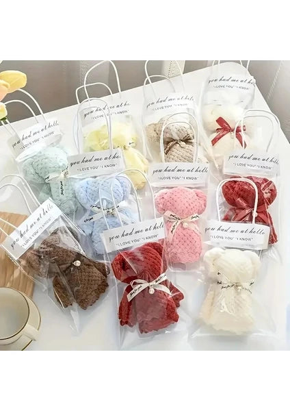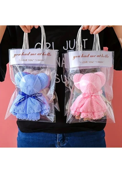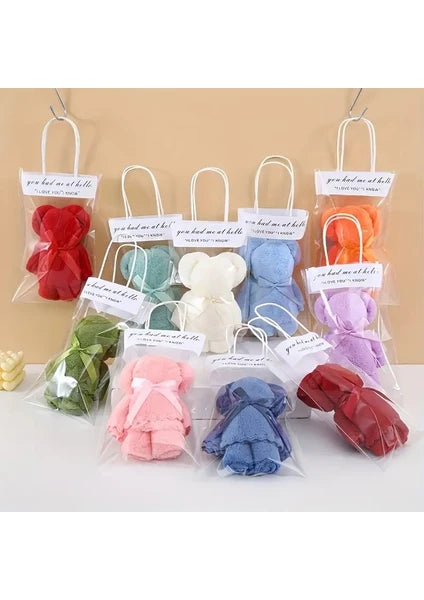 Sevimli Ayı Havlu Hediye Seti - Şeffaf Çantalar ve Kurdelelerle | Düğünler, Doğum Günleri, Anneler Günü & Noel Partileri İçin İdeal