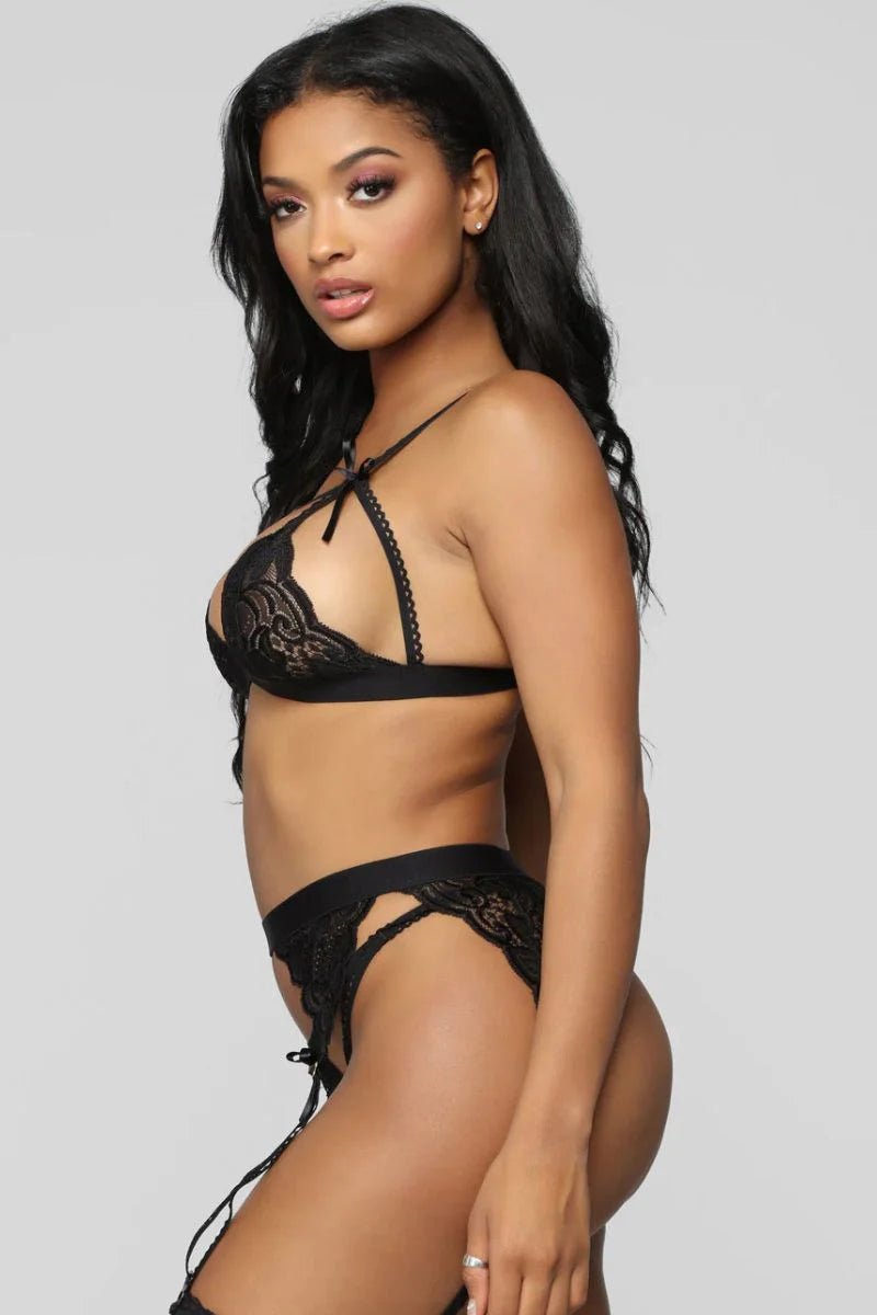 Siyah Dantelli Jartiyer Takımı